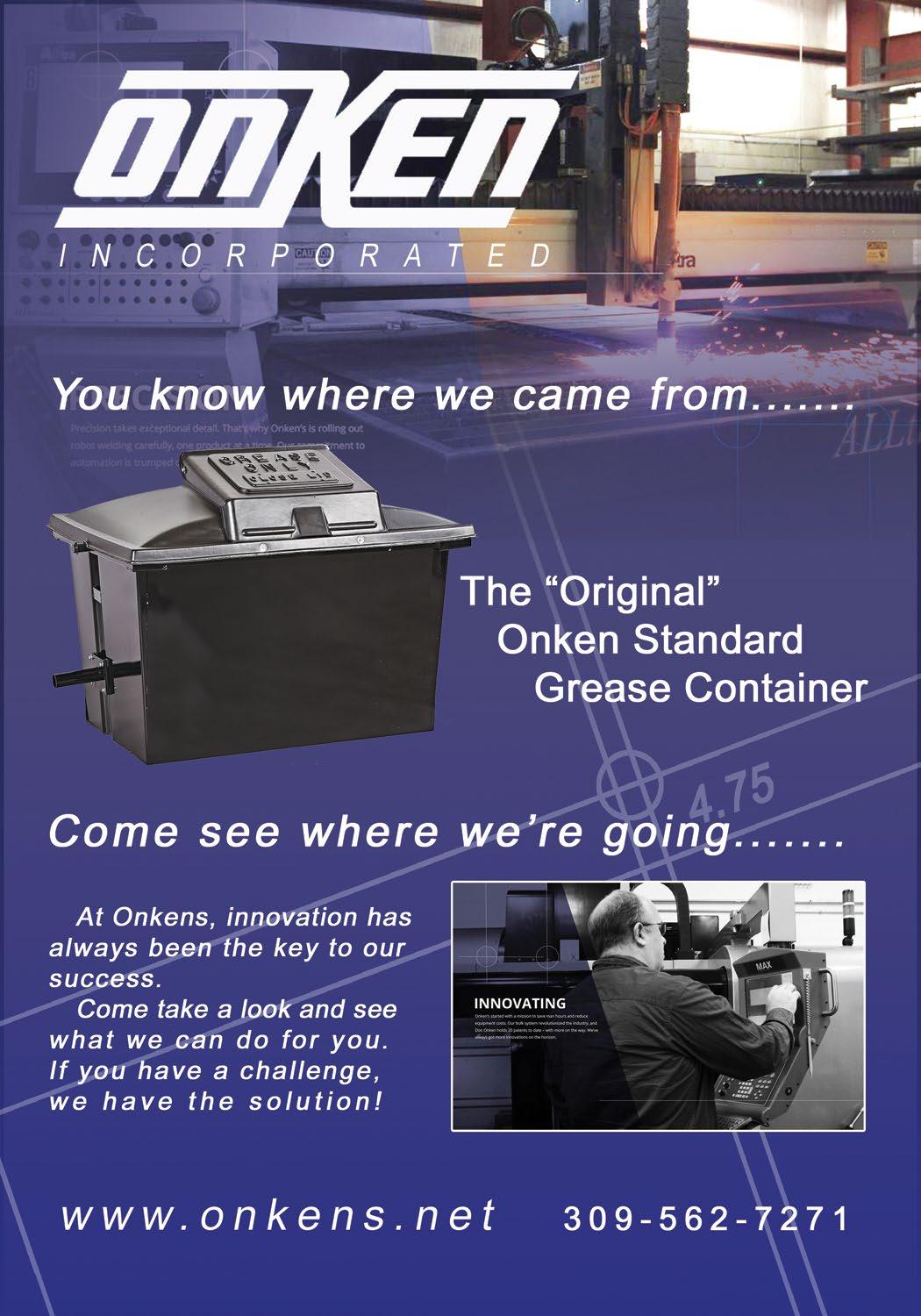 Onken: As manufacturers for the rendering industry, supplying leak-proof storage for cooking oil is key, so we use robotic welding and laser cutting to ensure our product is consistent and leak proof.