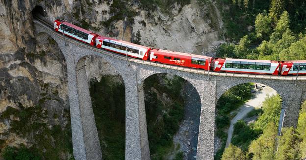Die Rhätische Bahn (RhB) bietet jährlich rund 15,5 Millionen Fahrgästen ein unvergessliches Erlebnis durch die eindrückliche Landschaft Graubündens.