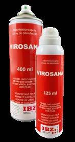 Mit dem Virosana KombiSpray für Oberflächen und Hände schützen Sie sich vor Viren und Bakte rien. Es ist schonend für die Haut und angenehm im Geruch. Ergiebig dank prakti scher Sprühdose – kein Verschütten, kein Tropfen. Erhältlich in 125 ml und 400 ml. www.ibzag.ch/virosana