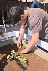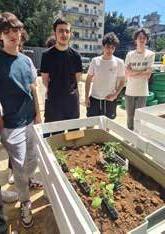 As part of their Service Learning project, 1re3 students planted a variety of edible vegetables including parsley, mint, cucumber, zucchini, tomatoes, onion, garlic, and a lemon tree in planters constructed by Grade 12 students using upcycled materials.