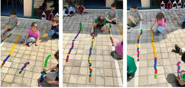 Inspirés par le conte, ils ont enlevé leurs chaussures et ont commencé à mesurer ces dernières avec divers objets trouvés dans la classe, tels que des Lego, des ours en plastique et des dinosaures en jouet.