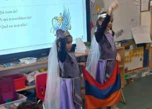 Durant notre thème “Histoires et Cultures”, les mamans de deux élèves de la GSB ont eu la gentillesse de venir présenter la culture arménienne. Elles ont captivé les enfants en leur parlant des super héros arméniens et en leur racontant la version arménienne des “Trois Petits Cochons”, intitulée “The Three Little Karnoogs”. En lisant cette histoire, elles ont encouragé les élèves à comparer les similitudes et les différences culturelles. En costumes traditionnels, leurs enfants ont exécuté une danse folklorique arménienne apportant une touche vivante à la présentation.