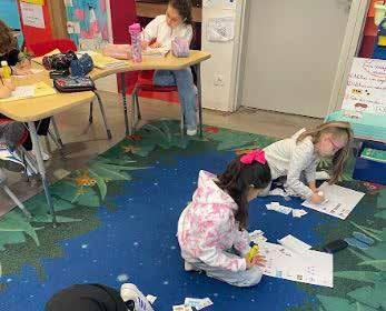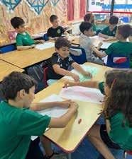 In Language Arts and Literacy, KG1 students participated in an engaging and multi-sensory letter exploration activity. Working in pairs, the students began by searching through a colored rice tray filled with letters. Once they found a letter, they moved to the second table where they traced their letter in sand. Next, they went to the paint trays, where they traced their letters with paint, adding a creative and colorful aspect to their learning. The activity continued at a table covered with a variety of letters, where students had to find and circle their letters using chalk, sharpening their ability to distinguish between different letters. Finally, an optional station had a large sheet of white butcher paper, where students, depending on their readiness, could write their letters using colored pencils. This comprehensive activity not only made learning fun but also helped reinforce letter recognition through various tactile and visual methods.
