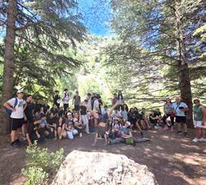 heritage for the benefit of future generations. To deepen their understanding of this topic, students visited the Forest of the Cedars of God in Bcharreh, where they hiked through the ancient woodland and learned about the current challenges facing cedar regeneration in Lebanon. As part of their fieldwork, they used quadrats to take ecological measurements and assess the state of natural regeneration of the Cedars of Lebanon. This handson experience allowed them to directly observe the delicate balance required to preserve and restore this iconic and endangered species.