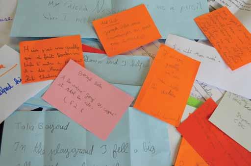 “In the playground, I fell a big fell,” stated another. “And my friend, Kiana, helped me.”