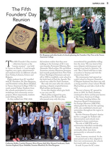 summer 2018 3 TheFEATURESAdventures of Alexander MacLachlan: Smyrna (Part XVIII) 4 The British Officers’ Sports Challenge Gift 7 The New Trend ...............................................................................8 The Fifth Founders’ Day Reunion ................................................................................ 11 Mud, Straws and Rats: Survival of Rural Laos 13 The Gift of an Education .............................................................. 16 Back to the ‘50s – Arab Style ......................................................... 18 The Blue Bird Project .................................................................... 21 CAMPUS InternationalNEWSDay......................................................................... 22 Alumni Association Elections ...................................................... 24 DINNERS & EVENTS Bahrain 26 Kuwait ......................................................................................... 27 Jeddah .......................................................................................... 27 Paris ............................................................................................. 28 Dubai ........................................................................................... 29 LettersALUMNItothe editor ...................................................................... 32 Updates ........................................................................................ 34 OBITS 35 Contents suggestions,Forcommentsoremailusatrhaddad@ic.edu.lb Editor-in-chief: Moufid Beydoun Editor/Writer: Reem Haddad Production coordinator: Sana Yamout Layout: Nazha Merabi EDITORIAL TEAM: Contributing photographers: Dory Khayatt, Reem Haddad