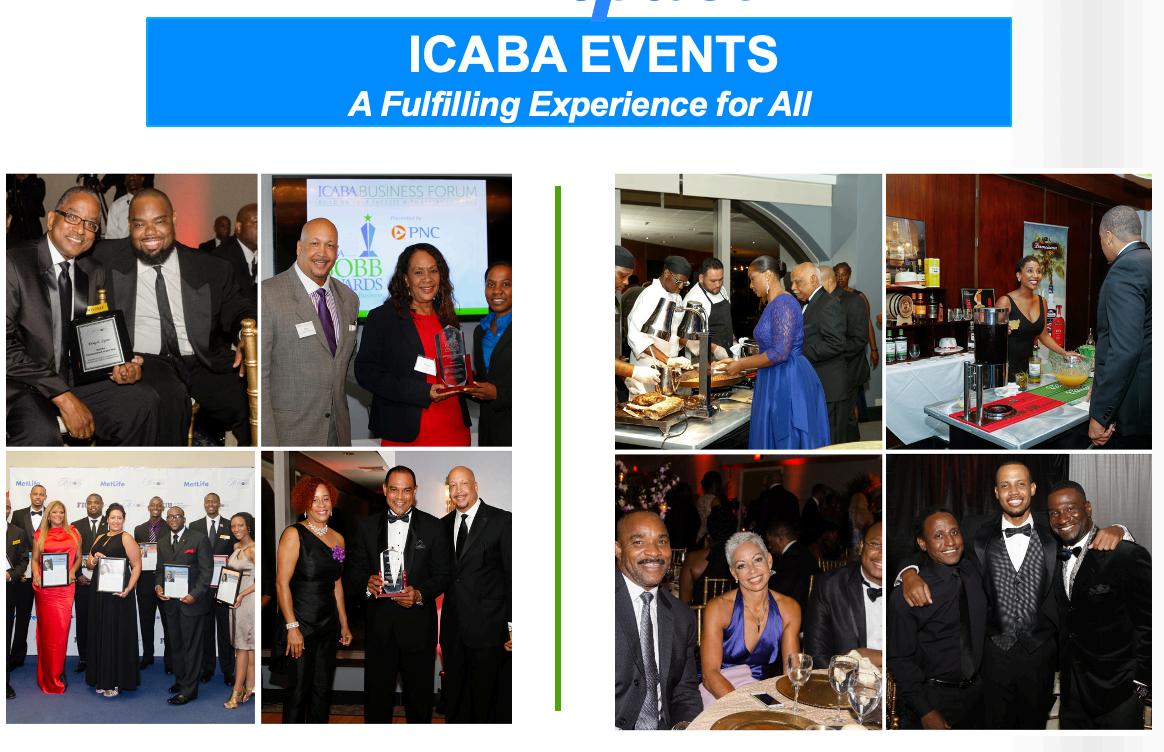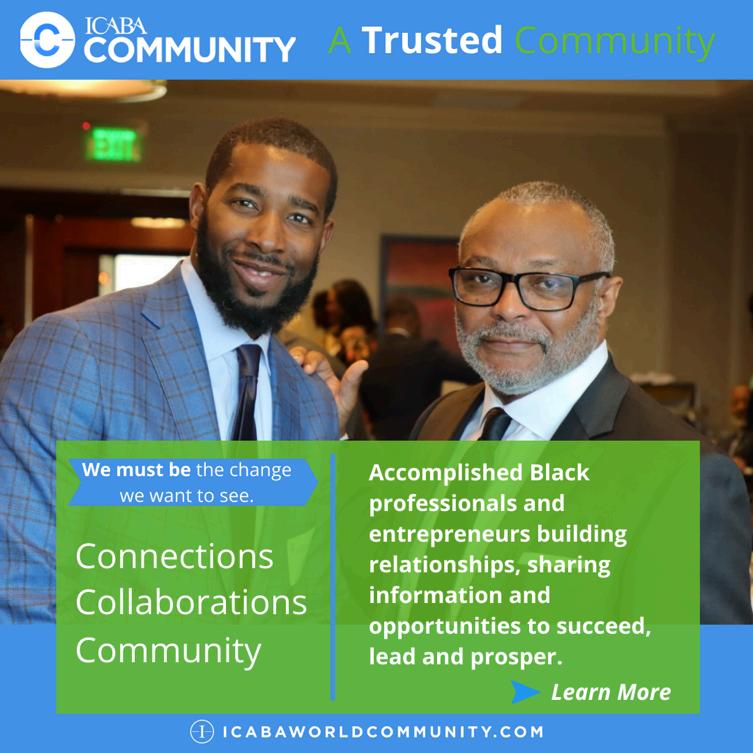 ICABAisanonlineecosystemassistingBlackprofessionals tosucceed,leadandprosper.Weactivatevaluable relationships,andcollaborationsviaevents,programs, coaching,resourcesandmastermindgroupstosupporta thrivingglobalcommunityofBlackprofessionals.
