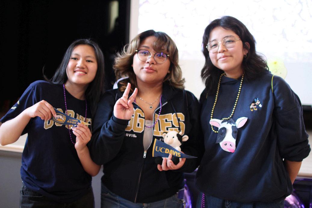 Pictured left to right: Allison Sweet ‘25, Gabriela Clemente Cerritos ’25, Fern Hernandez ‘25 at ICA Graduation, now students at UC Davis, UC Berkeley, and UCLA respectively, May 2025