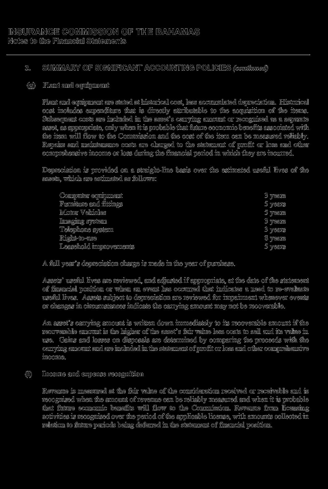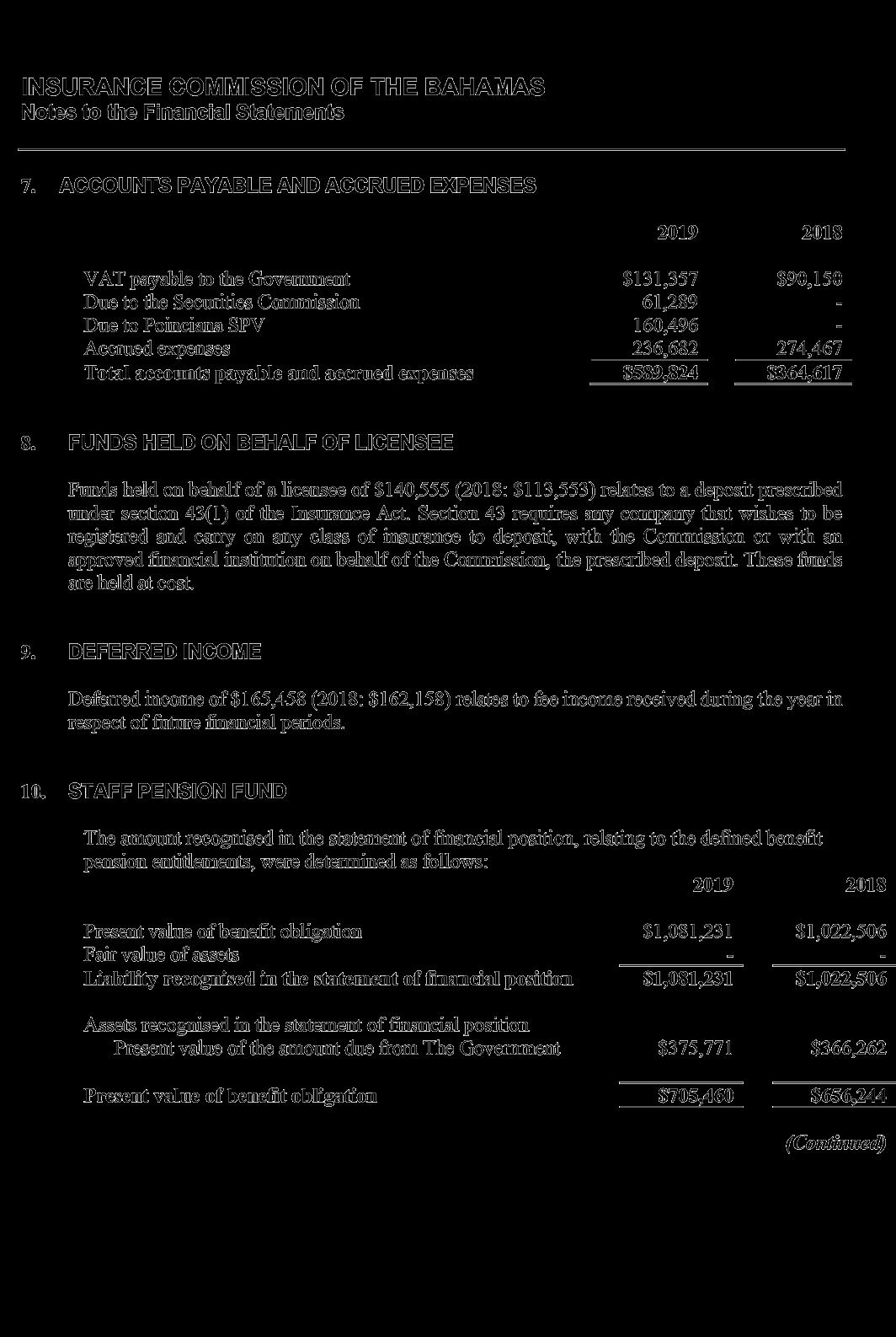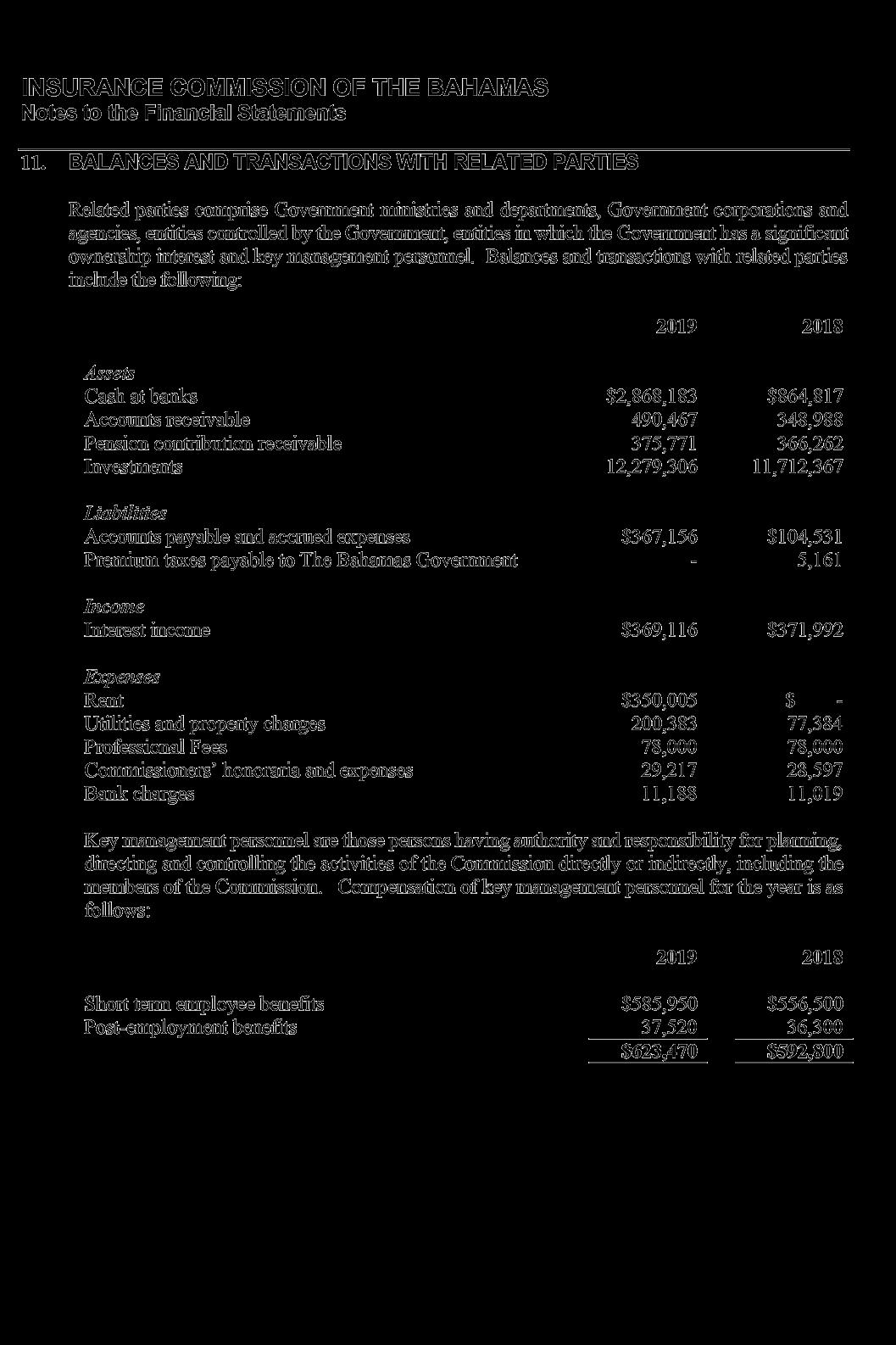 derived substantially from the retention of 25% of the premium tax collected from licensees on behalf of the Government, amounted to $6.79 million, and remained stable compared to the prior year, in line with the modest change in gross premiums written by the insurance industry. Total expenses of $2.87 million were contained in line with budget, after taking into effect the new accounting standard International Financial Reporting Standard (IFRS) 16 related to leased property and the reversal of a provision for VAT recoverable established in the prior year. IFRS 16 also required the establishment of a “right-of-use asset” in the amount of $1.76 million and a corresponding liability on the Statement of Financial Position based on the terms of the lease entered into as at January 2019 for the Commission’s new premises at Poinciana House, East Bay Street.