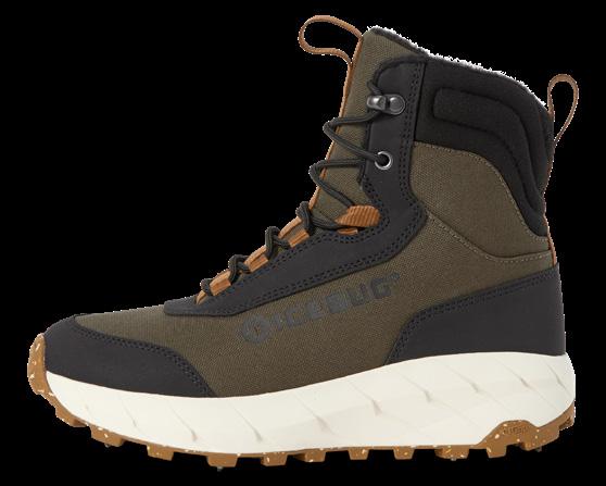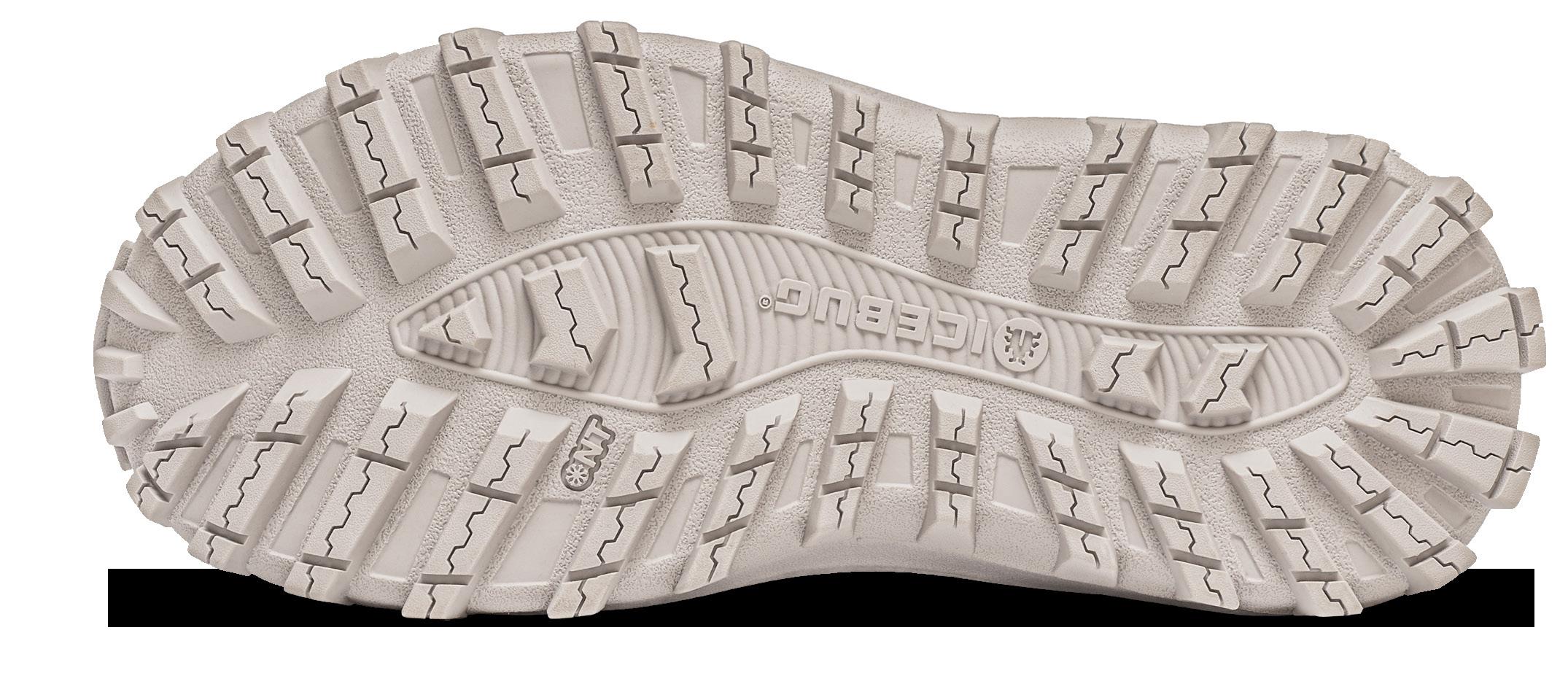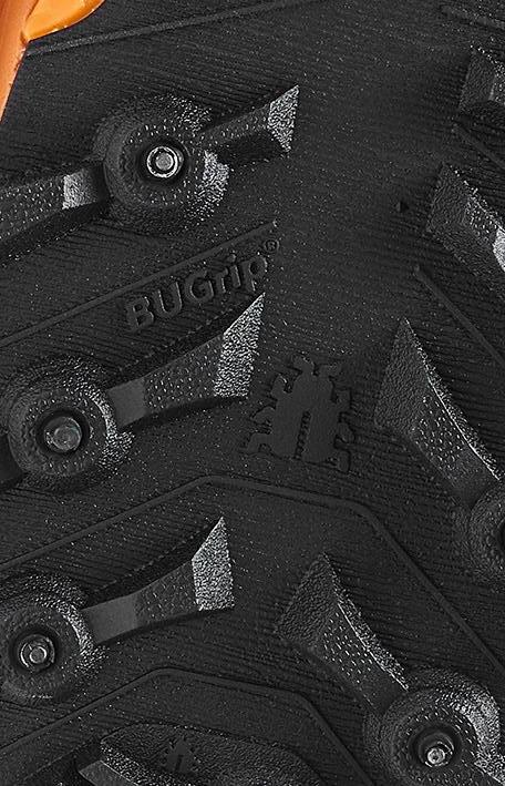 The BUGforce™ midsole is high stack and insulates from ground cold, plus gives an excellent rocker roll for very comfortable walks. The nonstudded Nordic Traction™ outsole has deep lugs, both providing a rugged look and awesome grip on pavements, city squares and gravel roads.