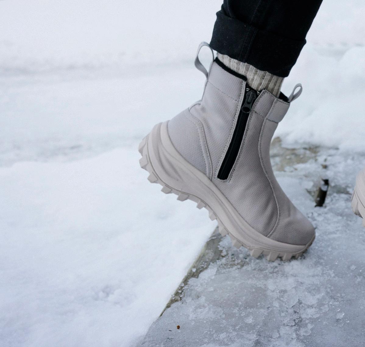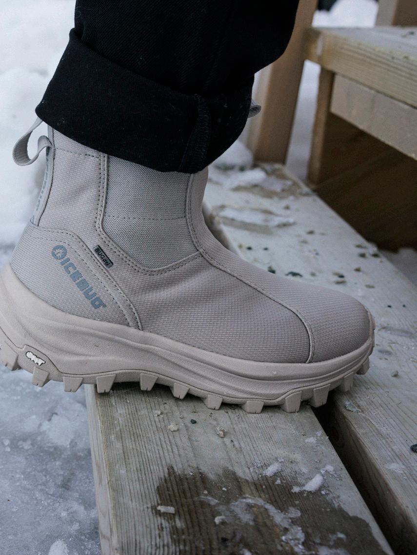 The shoe’s zipper is located at the front, making it easy to put on and take off. The non-studded Nordic Traction™ outsole rubber keeps its excellent properties also in low temperatures.