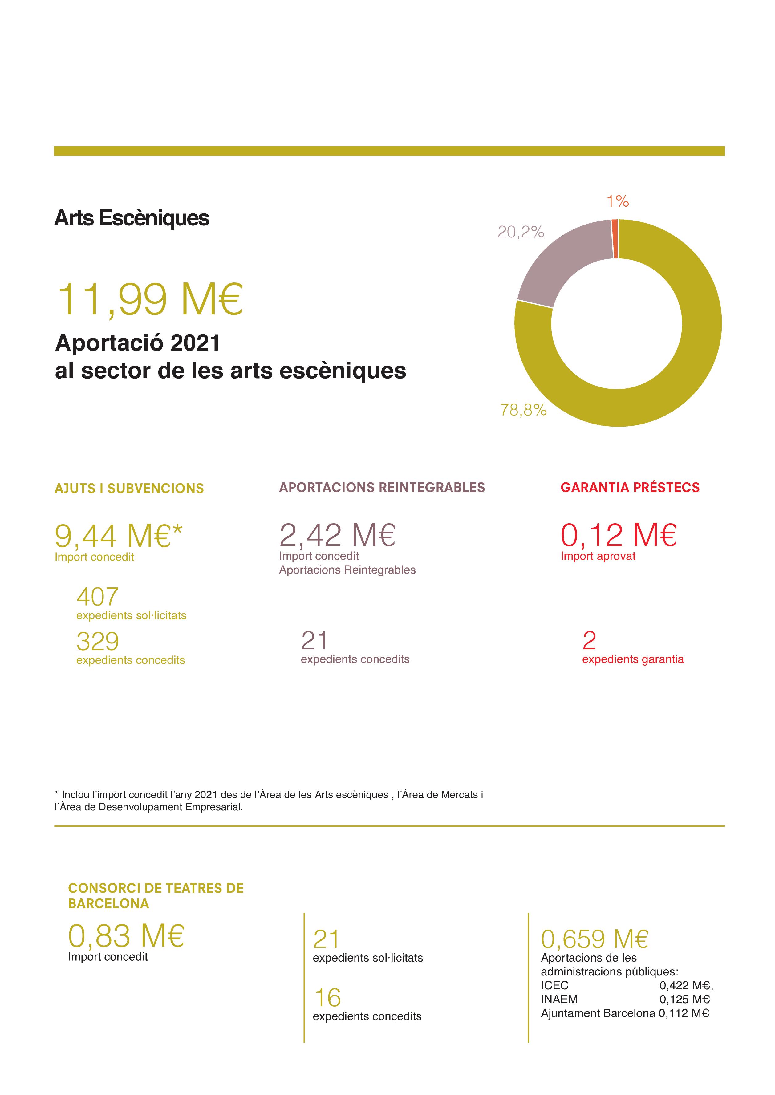 Pel que fa a les aportacions del Departament de Cultura, es mantenen pràcticament iguals respecte del pressupost de 2020, amb un increment inferior a l’1%. Això és perquè les aportacions extraordinàries que s’han rebut en el marc de l’aplicació de mesures per fer front a les conseqüències econòmiques derivades de la COVID-19 en el sector cultural s’han mantingut per a l’exercici 2021.