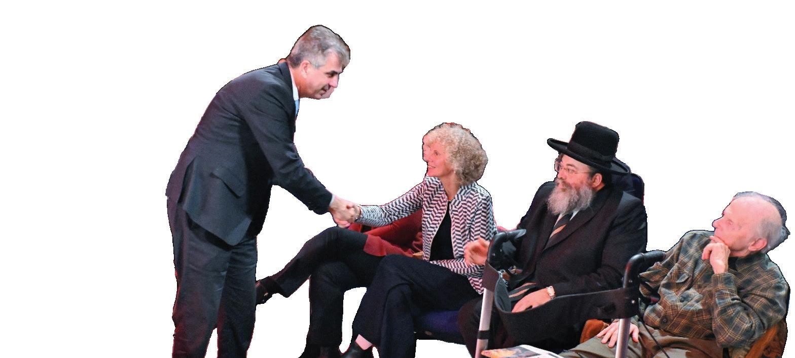Когда мы приехали, в зал для проведения мероприятий въехал автобус, полный наших подопечных. Это было потрясающее – видеть, как эти люди, пережившие Холокост, многие из которых сейчас передвигаются с помощью ходунков или опираясь на молодых волонтеров, сидят вместе и разговаривают. Это
