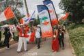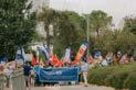 Des pèlerins de la Fête, arborant leurs drapeaux nationaux, bordent le chemin du parc Sacher à Jérusalem pendant la célèbre Marche de Jérusalem lors de la Fête des Tabernacles 2025.