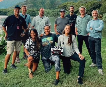 FRONT ROW LEFT TO RIGHT: CHERIE BROWN (DIGITAL UTILITY), NOHEA KAHAULELIO (LOADER), BAILEY NAGY (A CAM 2ND AC)