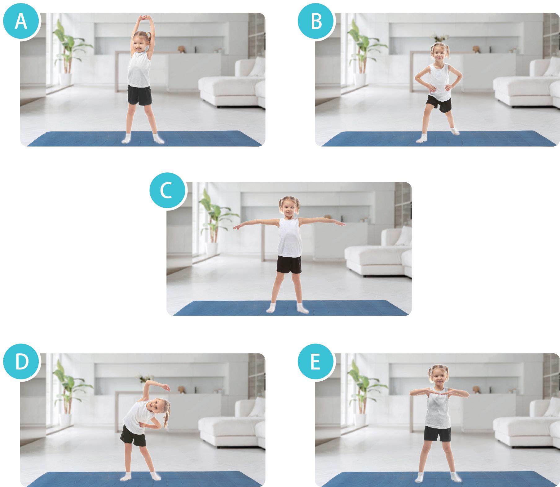上運動課時,記得在運動前做好熱身!試根據 以下圖片做伸展操,說一說你用到了甚麼身體 部分。 第一課