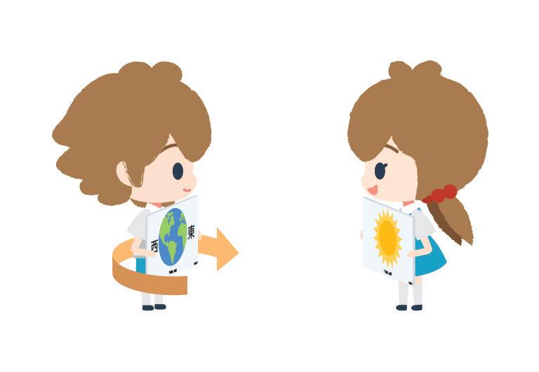 2. 兩人面對面站立,扮演地球的同學沿順 時針方向自轉。留意扮演太陽的同學在 哪個方向消失和出現。