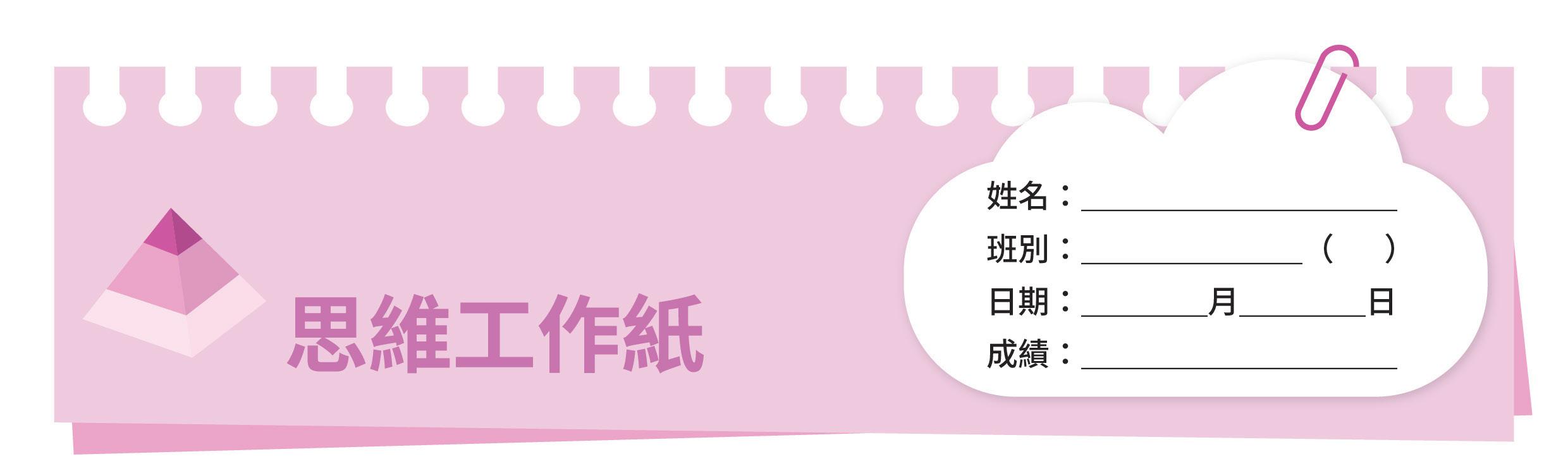 你的五種感官怎樣幫助你認識世界?試寫下你 使用的感官,並各舉出一種使用它感受世界的 例子,完成以下樹圖。