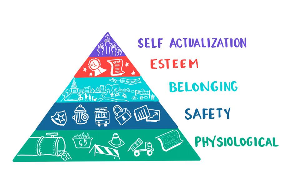 to take care of each basic level before moving toward self-actualization. My former colleague at Raftelis, Julie Gieseke, created an image to visualize this idea of Maslow on local governments. It’s a great tool to talk through where the programs, services, activities, and policies of your jurisdiction align in these five basic areas. Where are you on the journey and what are your aspirations?
