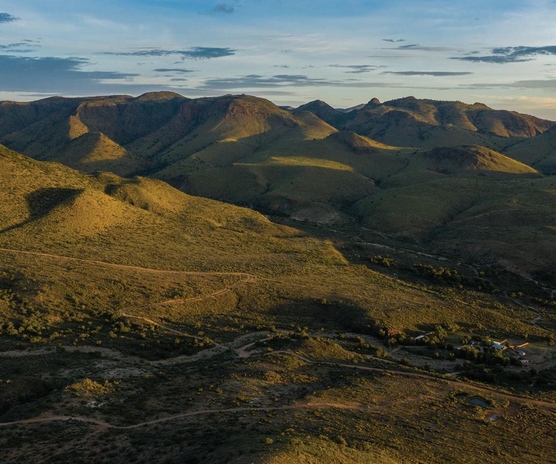 Elevated viewpoints extend across valleys and seasonal watercourses, while open rangeland supports grazing and wildlife habitat. The terrain offers a balanced