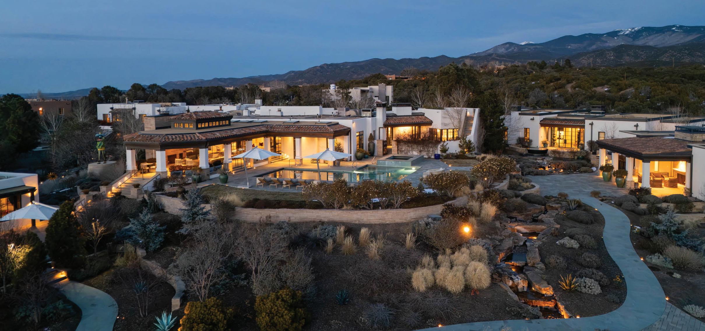 This rare sanctuary in the heart of Santa Fe is composed of multiple private residences, united by traditional Puebloan architecture, fourteen fireplaces, and sweeping mountain views. Resort style amenities include a pool and spa, outdoor pavilion, expansive lawns, and heated walkways, while 4 guest residences offer indulgent spaces such as game rooms, a gym, massage room, and sauna. Designed for privacy, gathering, and quiet luxury, this is a true Southwestern retreat unlike any other.