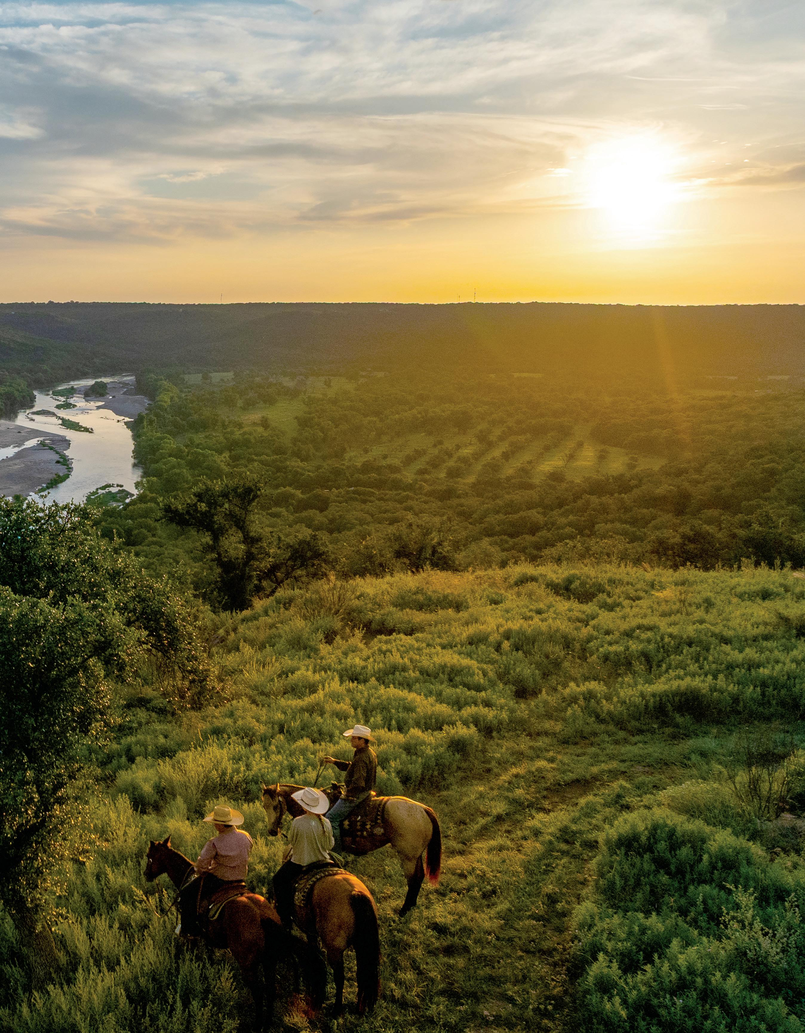 Native and exotic wildlife roam carefully stewarded habitat. Riding trails wind through open rangeland. Evenings gather around firelight beneath expansive Texas skies.