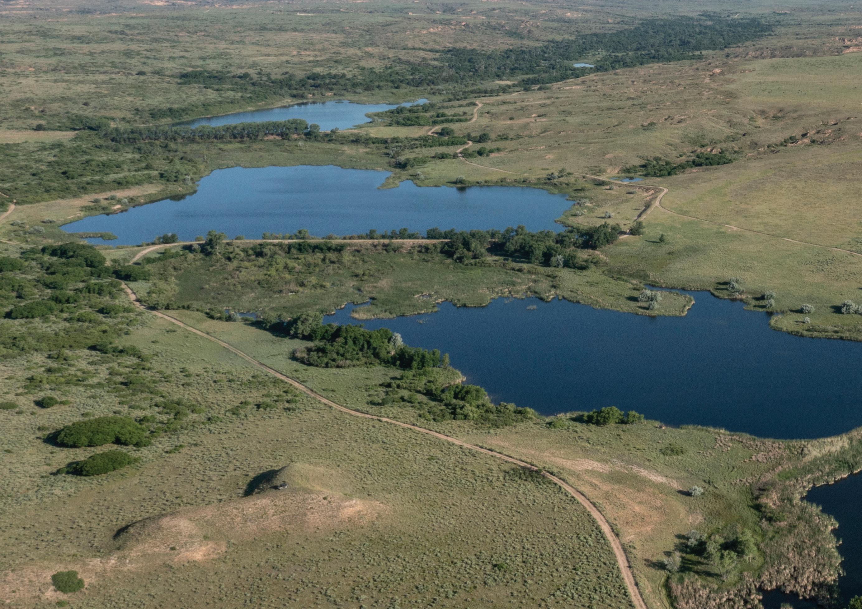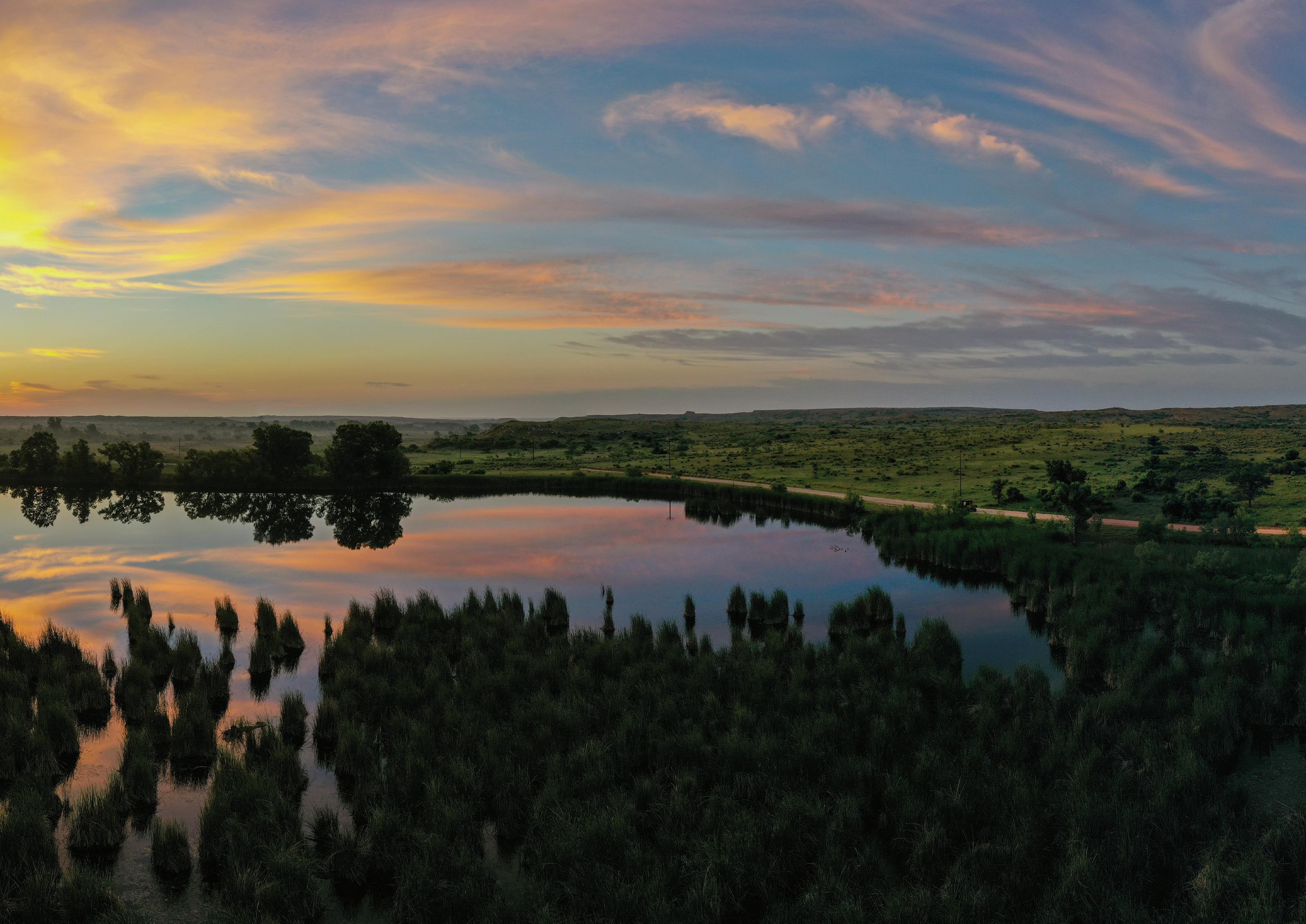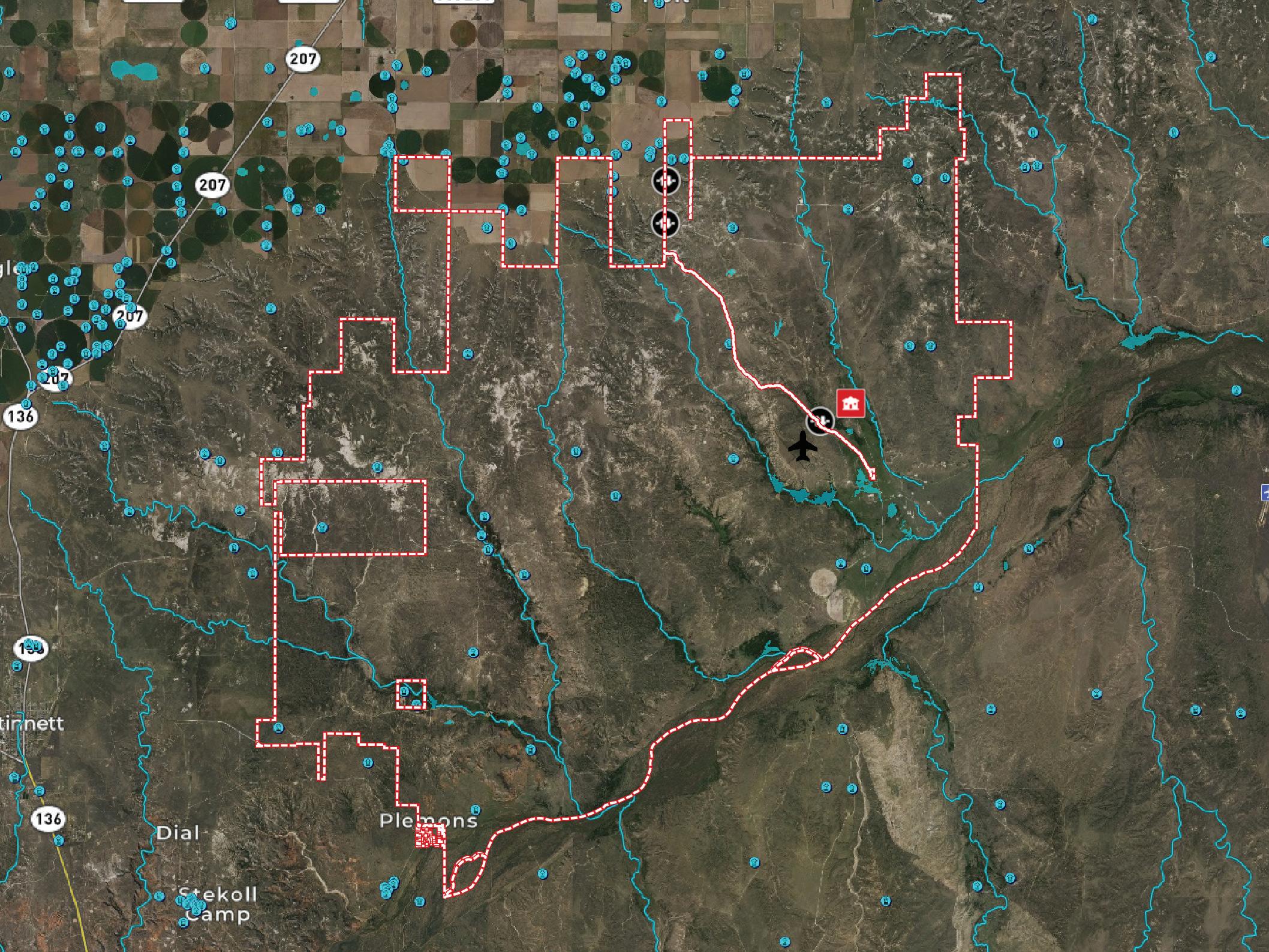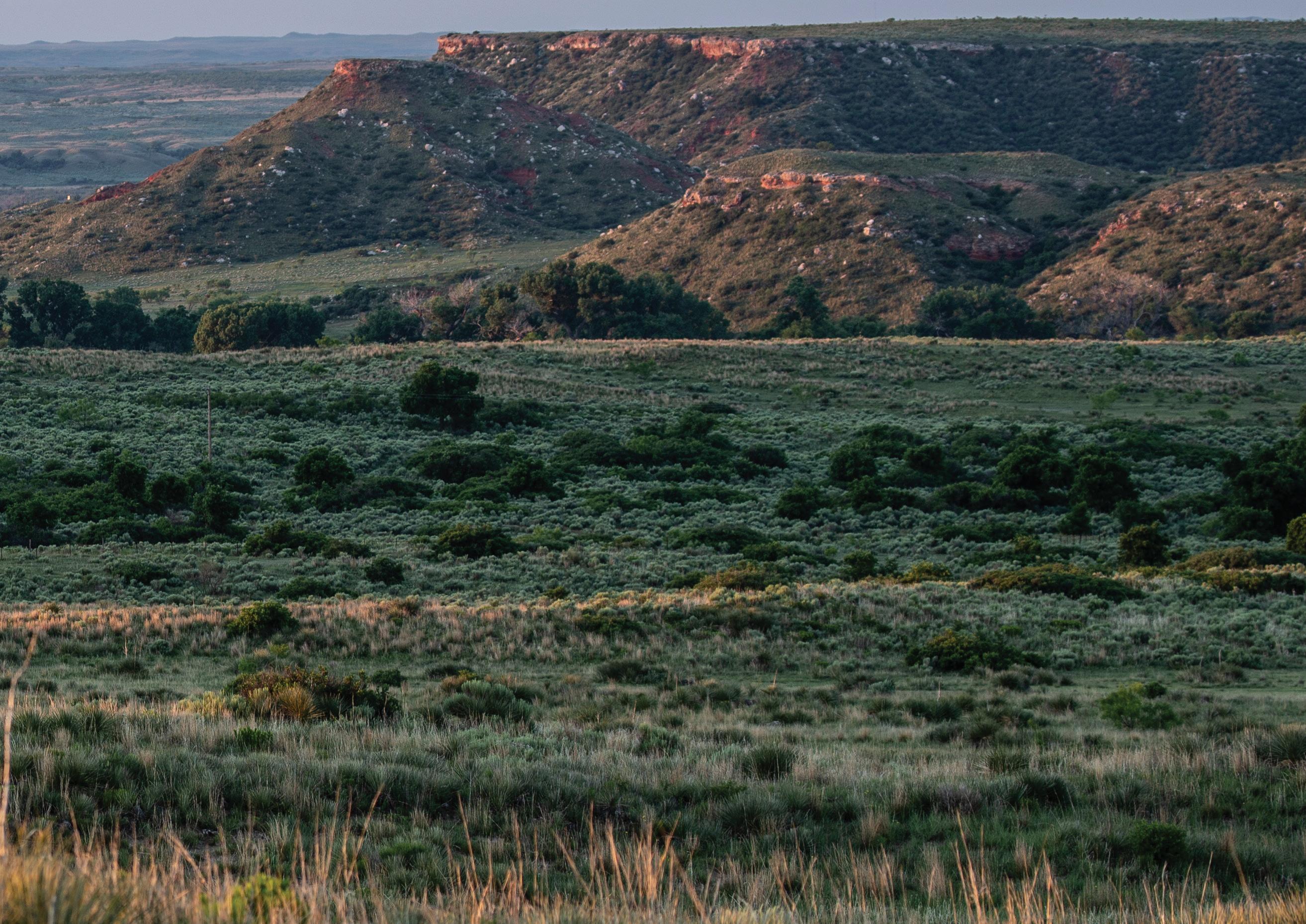 The soils on the ranch vary from caliche/gravely soils along the caprock escarpment, to deep sand rolling dunes, as well as sandy and loamy bottomland soils along the numerous creeks and the Canadian River bottom. The deep sand rolling dunes are covered by a mixture of tall to mid grasses and forbs. The grasses include little bluestem, big bluestem, sand bluestem, switchgrass, silver bluestem, side oats gramma, hairy gramma, blue gramma, buffalo grass, shin oak, sand plum, and sagebrush.