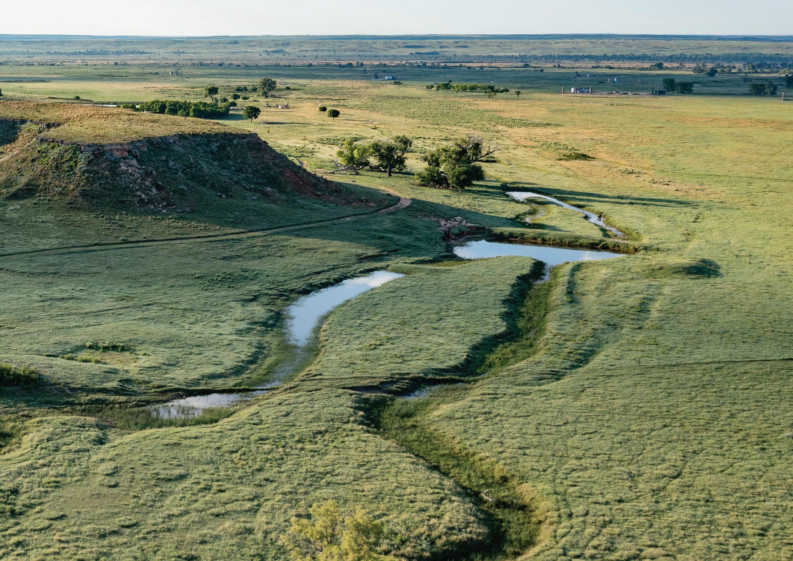 The Turkey Track Ranch was pioneered in the era of legendary WT Waggoner, 6666 and Goodnight Ranches. Boasting almost 80,000 acres under one fence and some 26 miles of Canadian River frontage, the ranch is a rare confluence of natural resources; containing an abundance of water, productive fertile grasslands, and diverse wildlife -set within rolling and rugged topography of mesas, draws, valleys and vistas interposed with open rangeland -epitomizing the western ranch lifestyle and famed fertile buffalo plains of yesteryear.