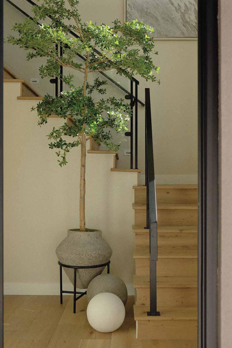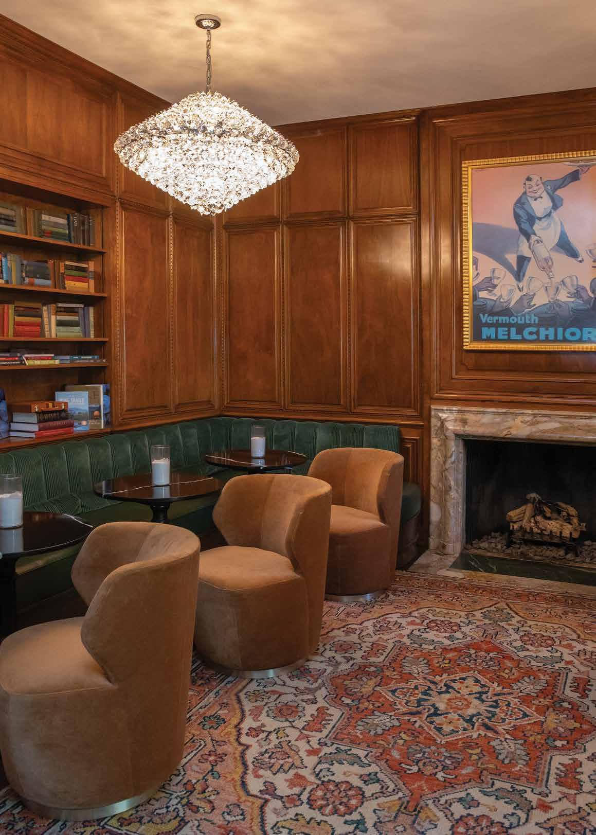 “There was a lot that happened in the house before we even got to the furnishings,” Shively notes. Indeed, the designer also suggested architectural renovations to the home, including expanding the kitchen, reconfiguring the primary bathroom, leveling the dining room ceiling to create a more intimate setting and transforming an unused attic corner into a reading nook, which can be reached by a new, customdesigned spiral staircase.