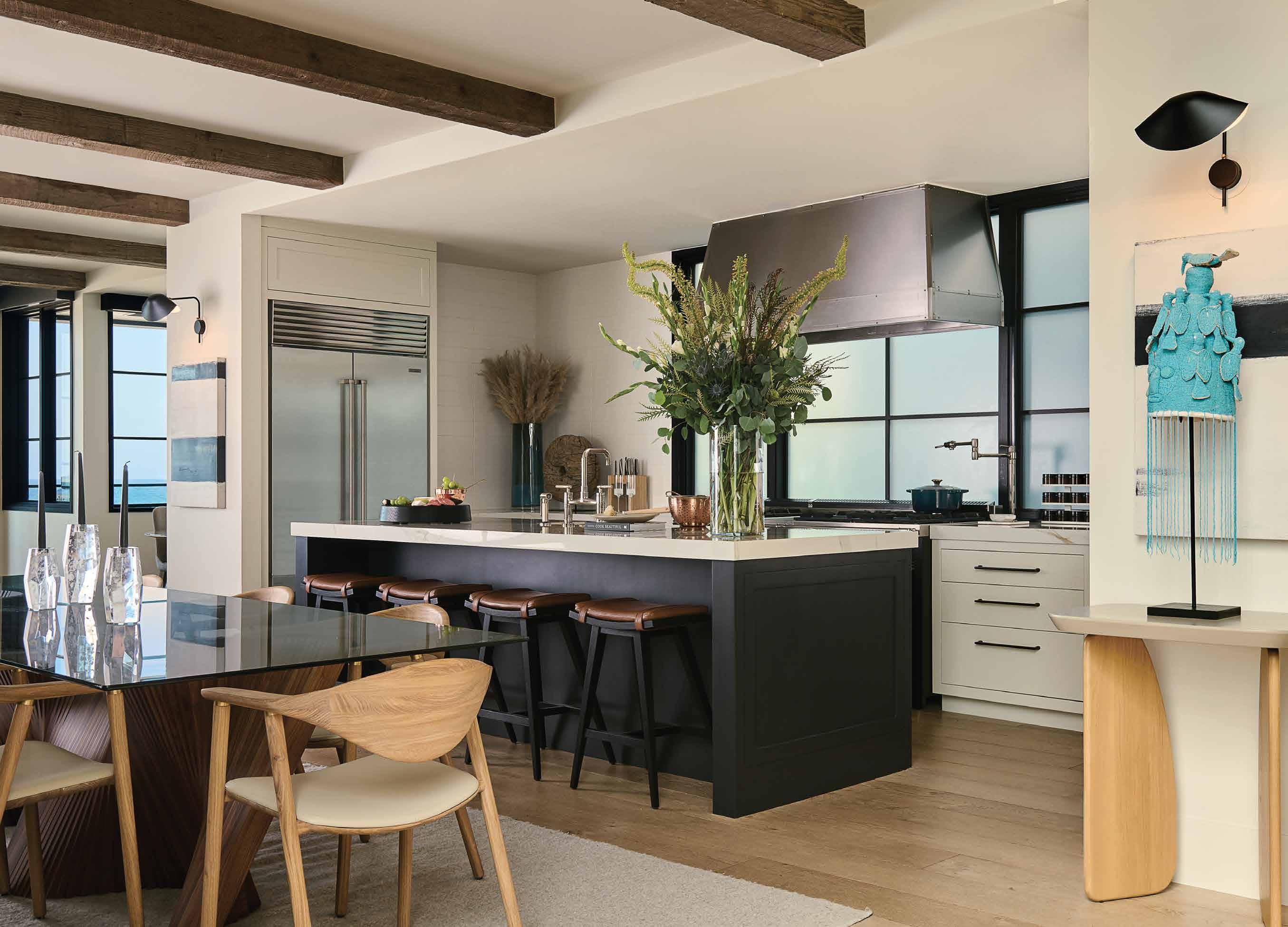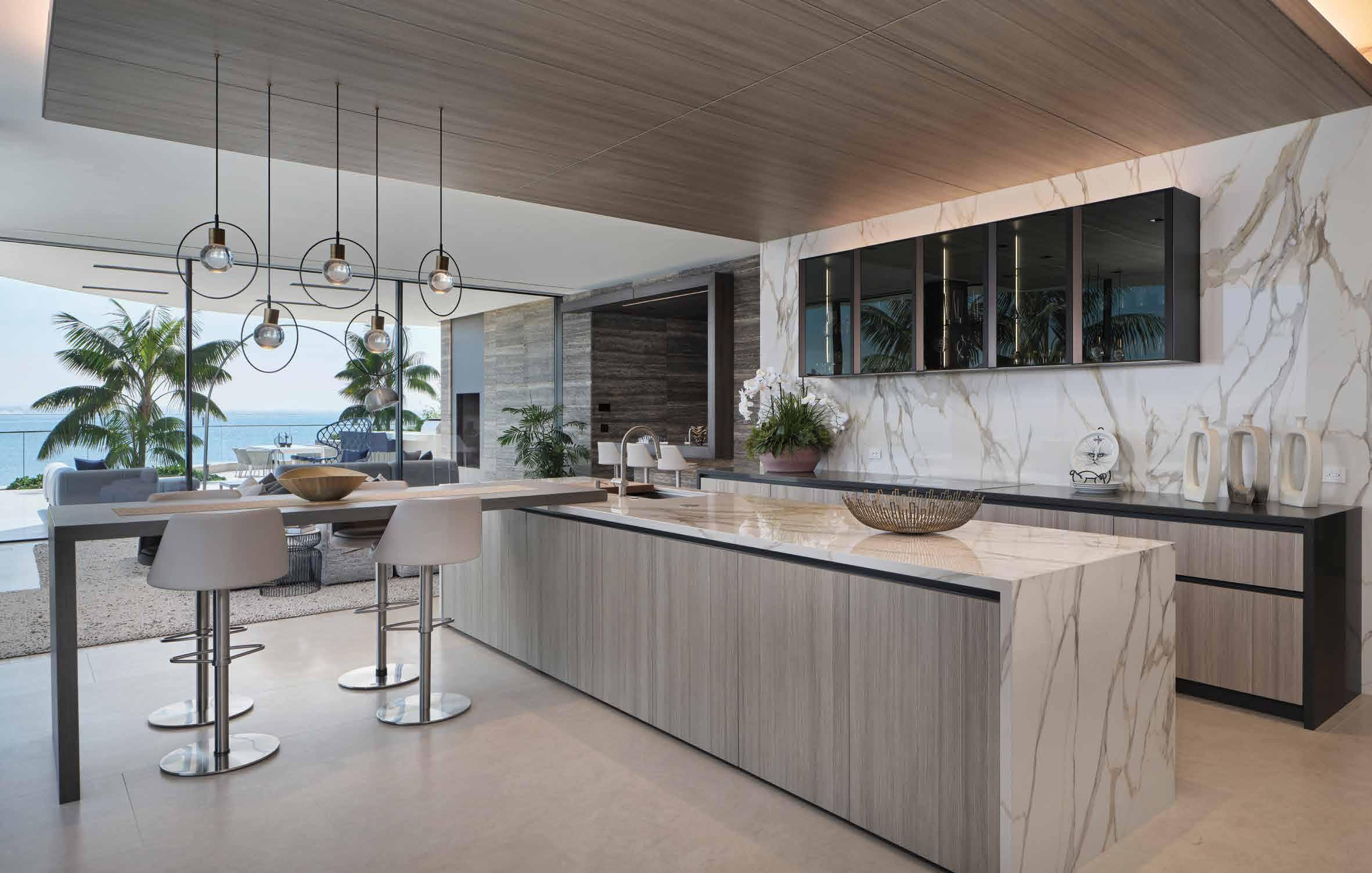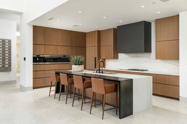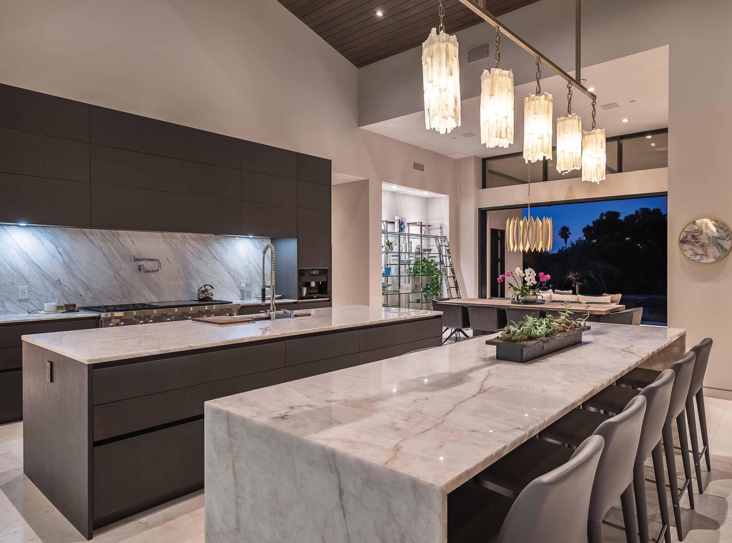 popular, and I think having that open space began to resonate with people,” Shirvanian notes. “Even with pocket doors, we have technology that allows you to touch a button, and paneling comes to cover the kitchen space, so when you look at it, it doesn’t seem like kitchen cabinets. You see large, sleek panels.”