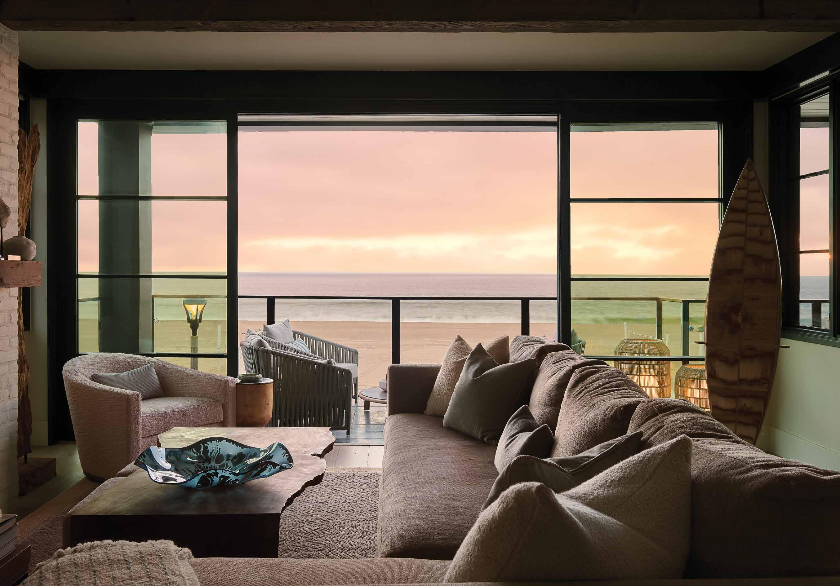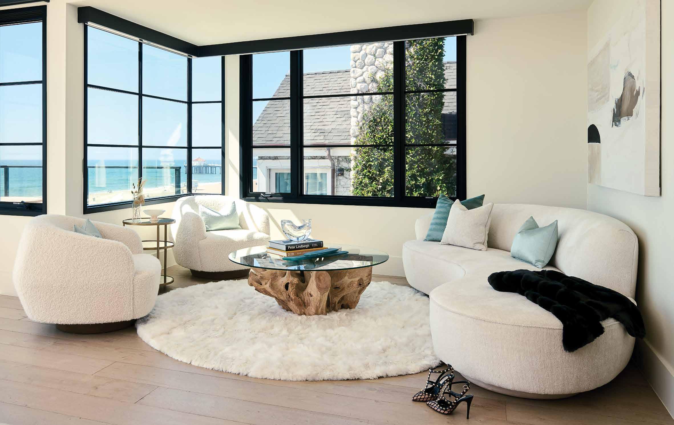 The house is a backdrop to the natural beauty of water surrounding it. “I chose a warm neutral palette as the surrounding blue water becomes the home’s color,” Arianna remarks.