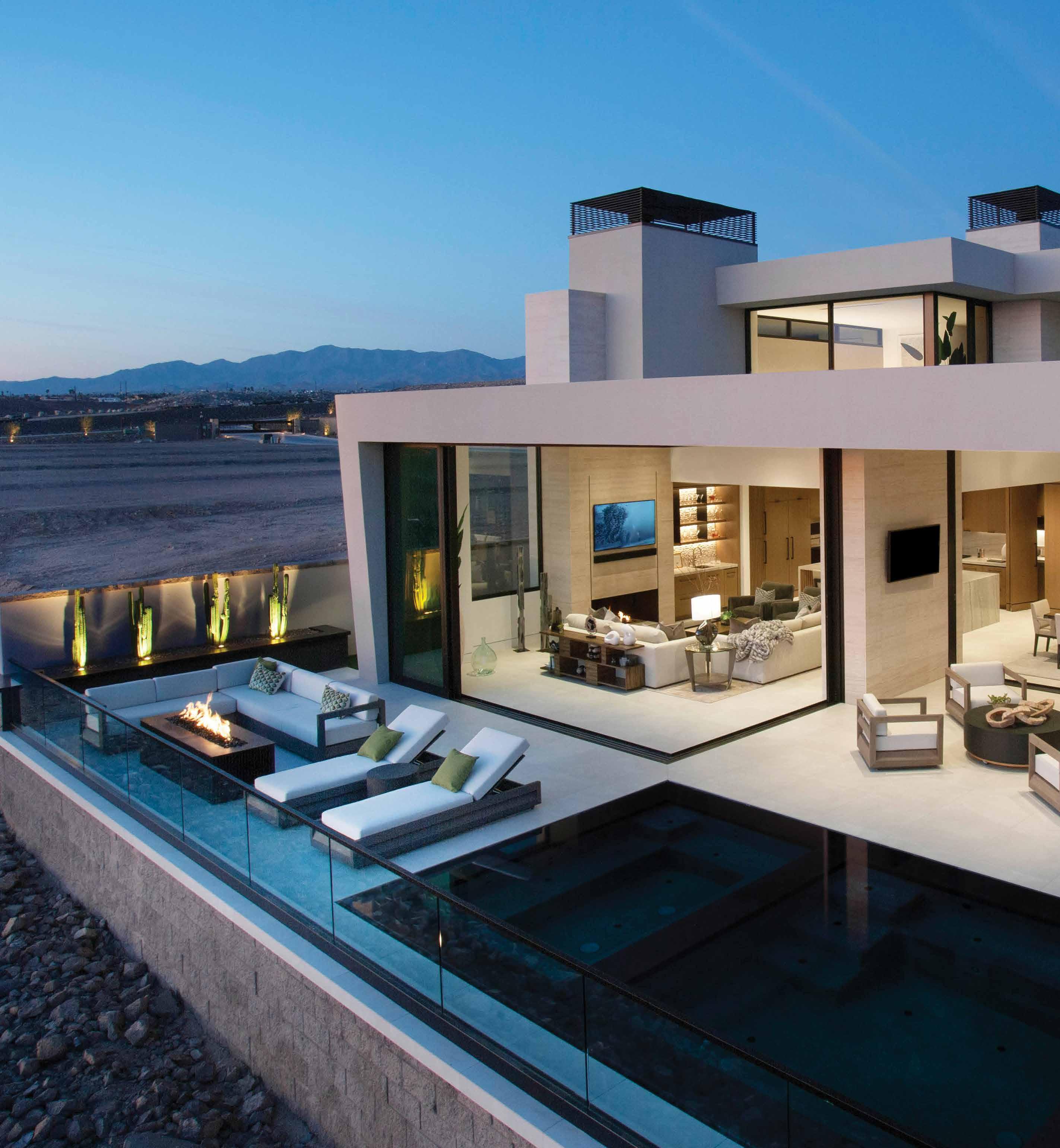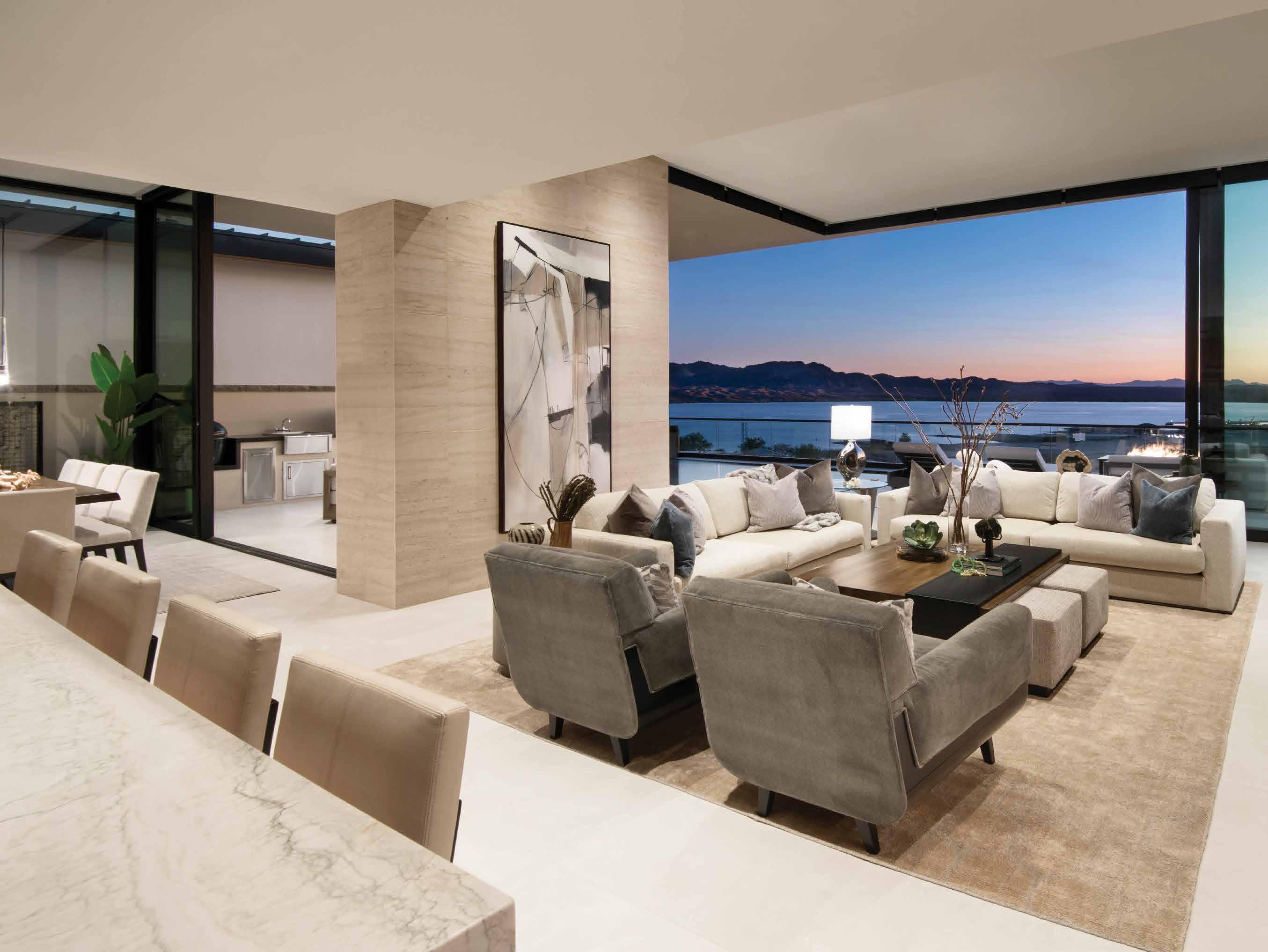Now that they have settled into their new abode, the Wards are savoring its modern design and the Lake Havasu lifestyle. “We’re shopping for a new boat,” Scott says, eyeing the marina a short distance away. “Socializing here is tying up your boat at the water’s edge and meeting friends for drinks or dinner at restaurants along the lake. At our house, the sunsets are spectacular because we face west, and at night, we can see the lights of the London Bridge.”