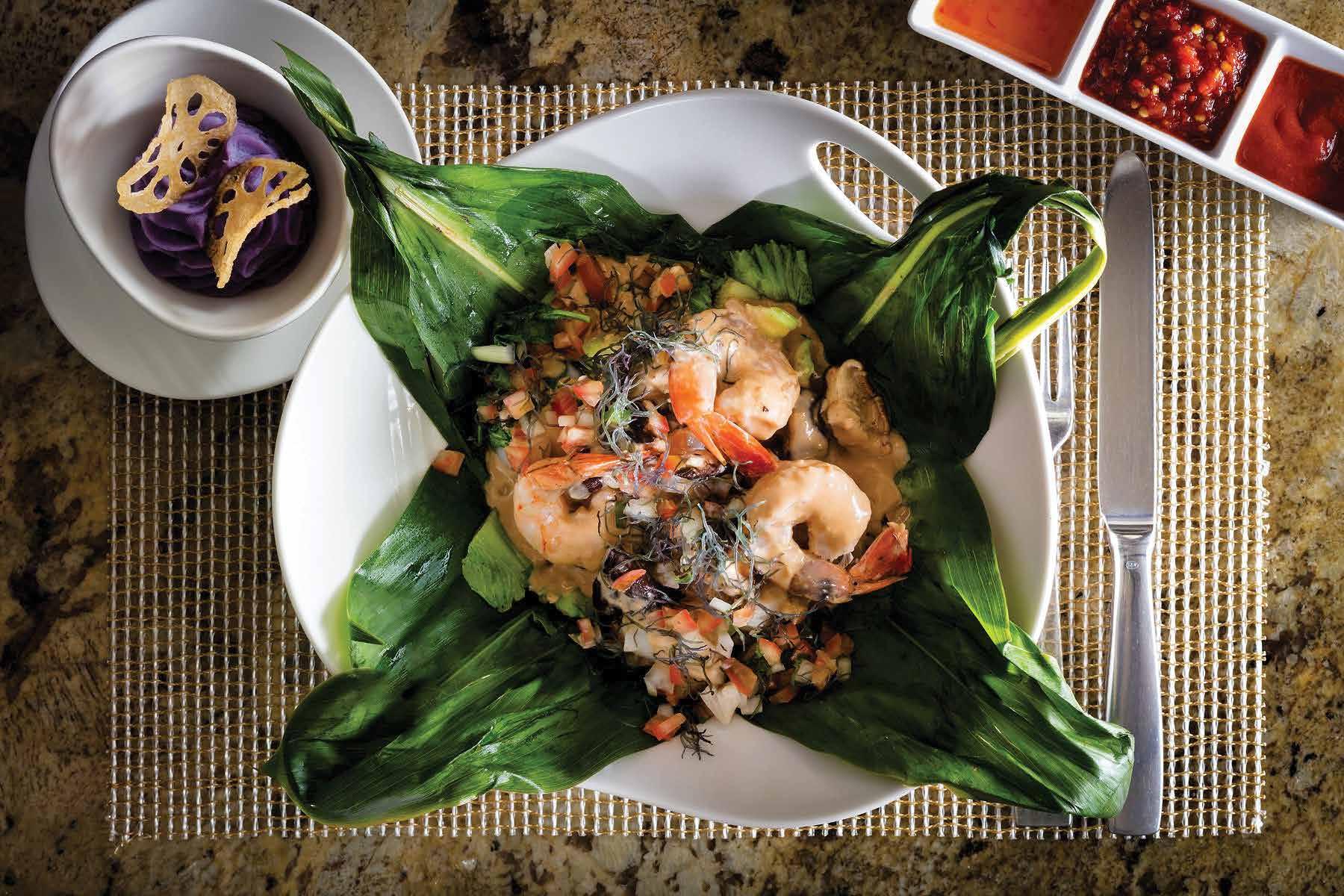 Dinner at Kō, the Fairmont Kea Lani’s signature restaurant, was fabulous. I put the chef in charge of my meal once more. He started me off with the Lau Lau dish: fresh seafood wrapped in ti leaves and soaked in a shoyu-coconut milk sauce. The sweet and savory combination was fantastic. He then served the fresh catch on a bed of taro risotto and garnished it with various vegetables. The symphony of flavors danced on my palate.