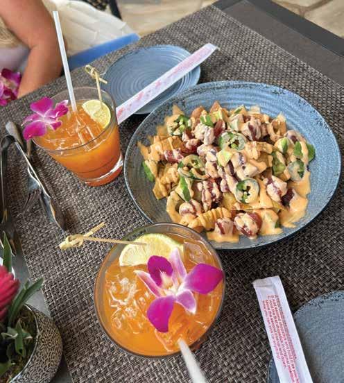 The Ama Bar and Grill offers stunning ocean views from every table. I enjoyed a delicious orange Ama’s Passion cocktail while taking in the view of the beach below. For my lunch, I snacked on the Ahi wonton chips and the poke bowl, which consisted of shoyu ahi, Llmu, Maui onions, red chili flakes, bubu arare, wasabi aioli and avocado on a bed of white rice.