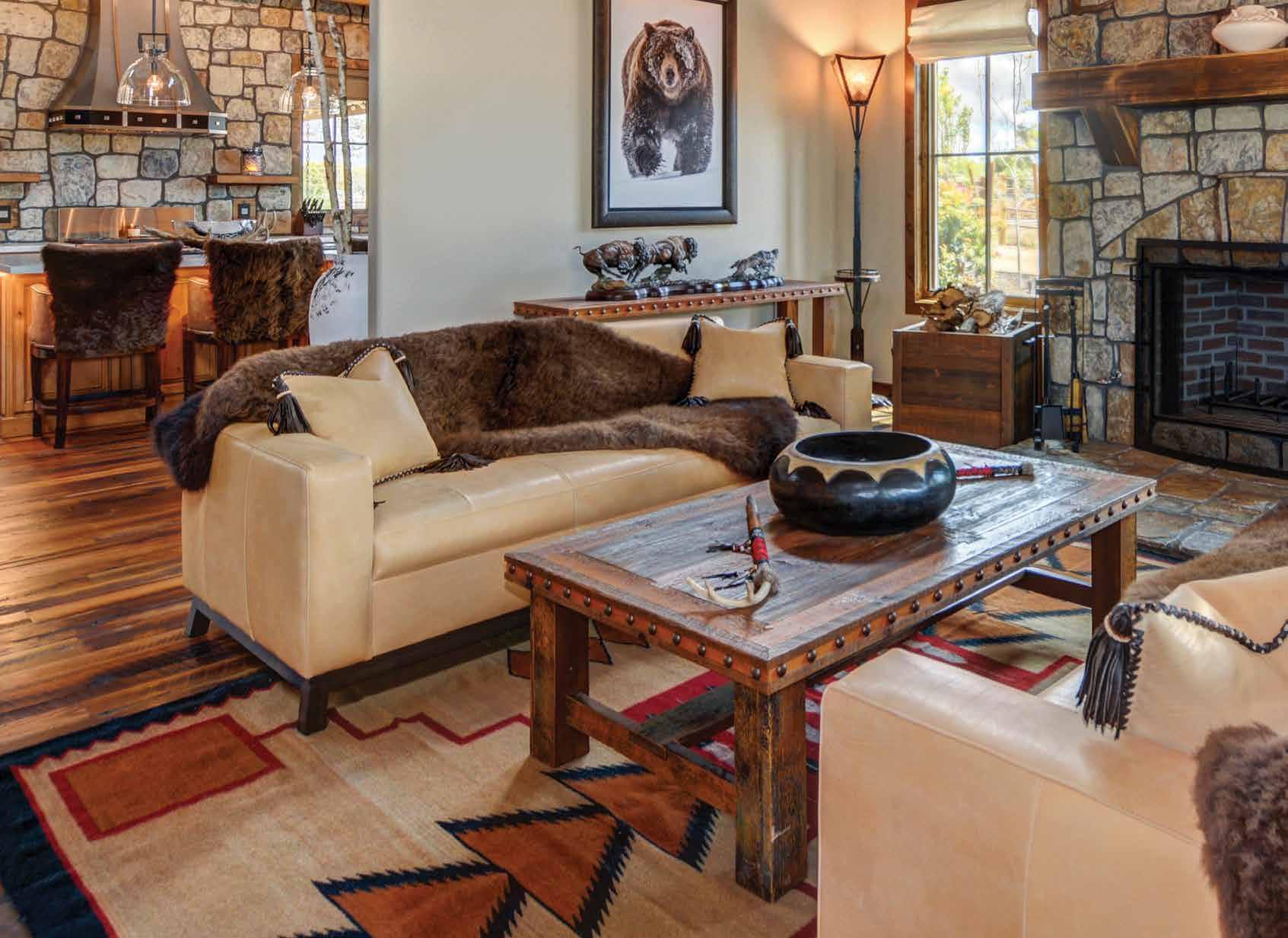 is a cut-pile silk and wool rug with scaled acanthus leaves rendered in an Art Moderne manner. The result is a palatial gathering area for the family to connect and bask in the views of their estate.