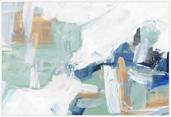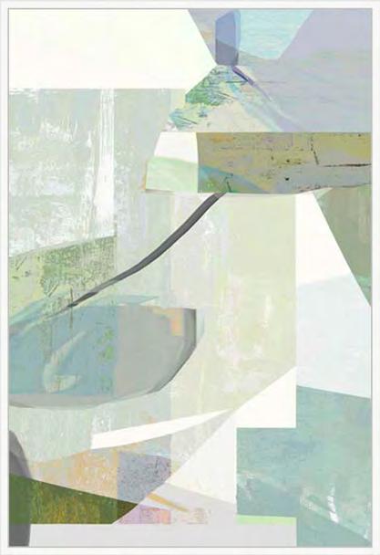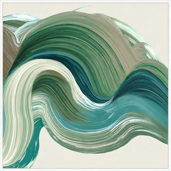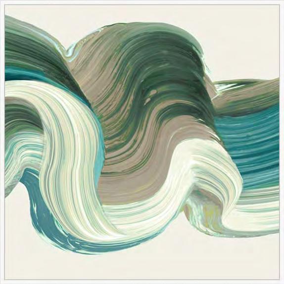 DC26498CW - Waves of Blue and Green in White 31X41 - Giclee on Canvas - 9/16” X 2 3/8” Matt White Forma Floater