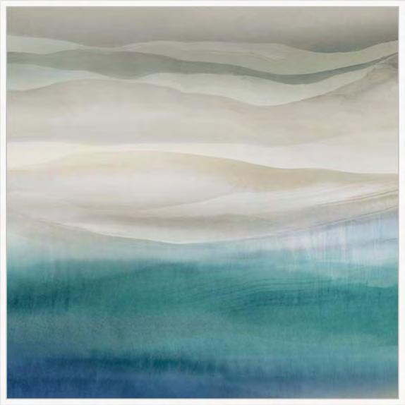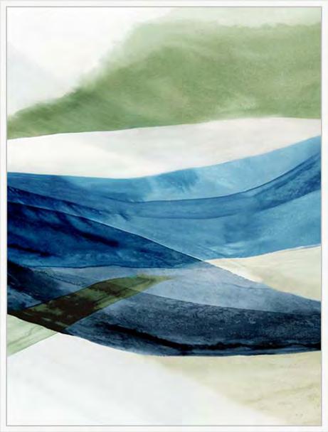 DC26499CW - Waves of Blue and Green in White Grande 44X58 - Giclee on Canvas - 9/16” X 2 3/8” Matt White Forma Floater