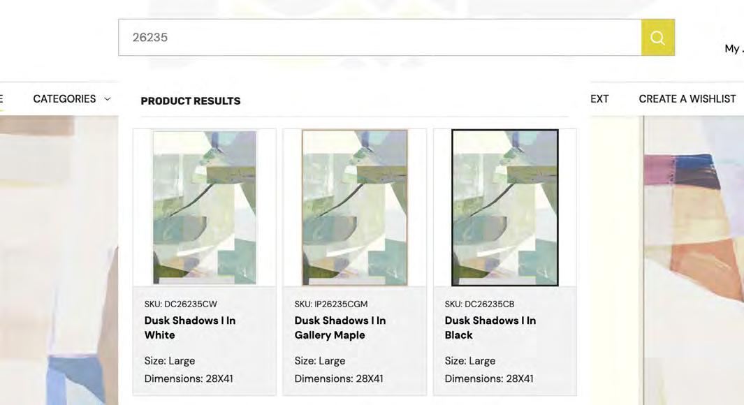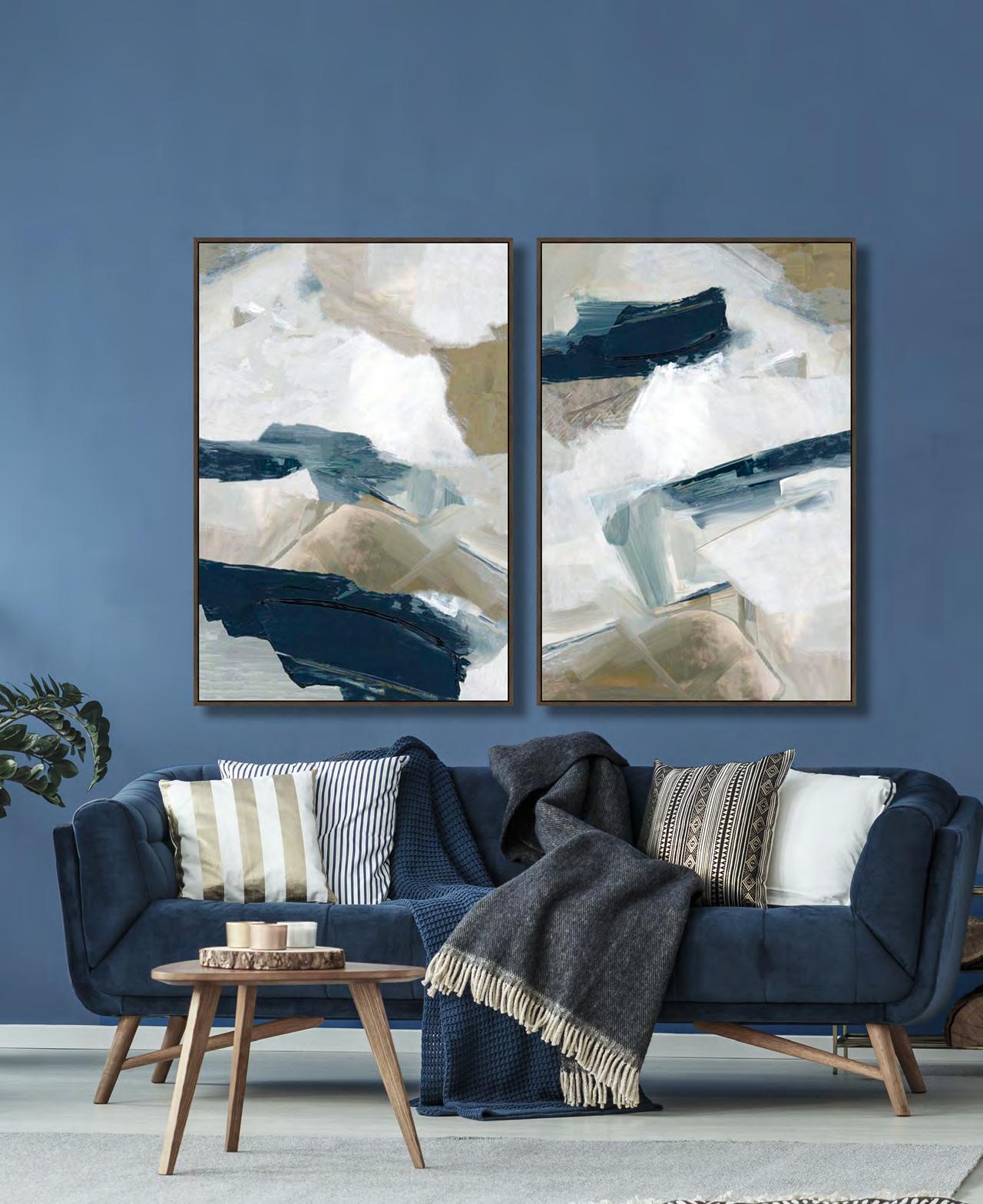 Each artwork in the Alexis Contemporary Canvas Collection is available in up to four frame options. The frame is identified by the last letters of the inventory number and is also noted in the title. Below are the frame codes shown at the end of each inventory number: Gold Maple Oak Champagne