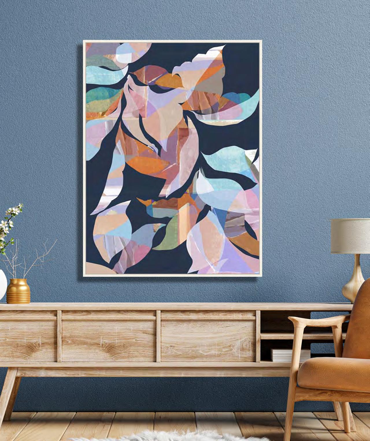 Each artwork in the Alexis Contemporary Canvas Collection is available in up to four frame options. The frame is identified by the last letters of the inventory number and is also noted in the title. Below are the frame codes shown at the end of each inventory number: