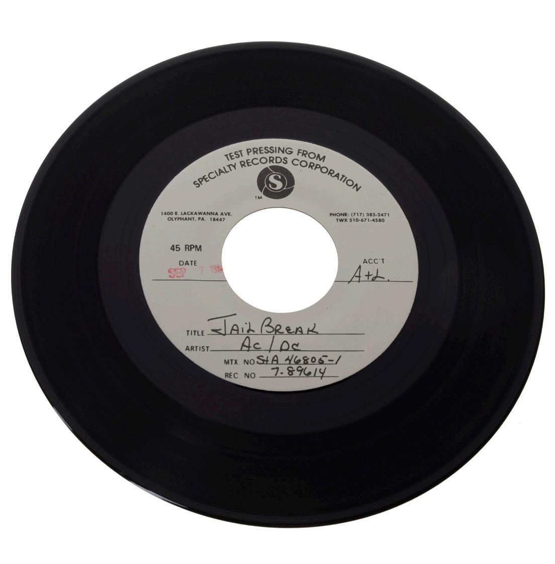 LOT #187: AC/DC - Rare 7” Test Pressing – Unreleased Live Version of “You Shook Me All Night Long”