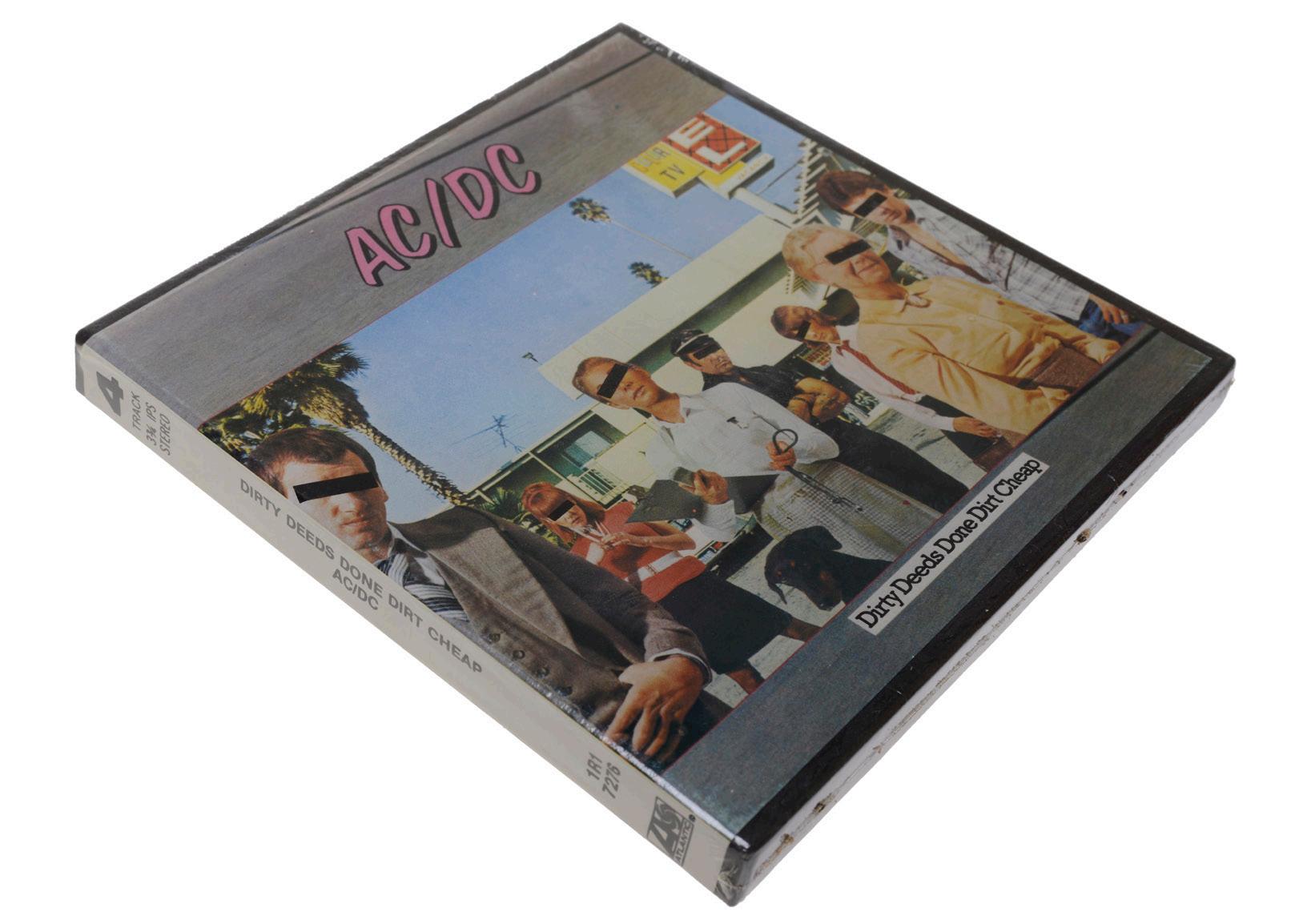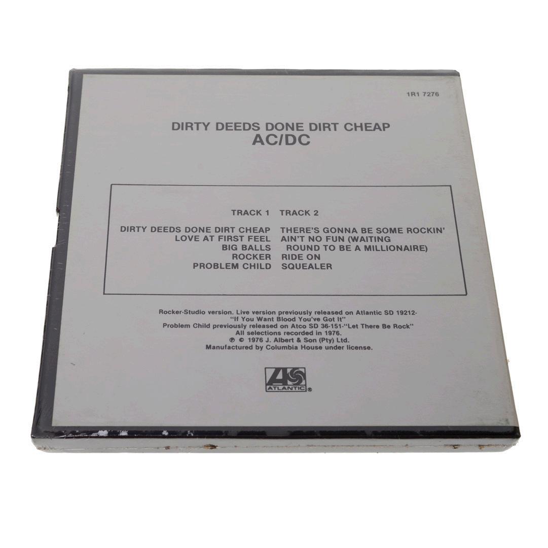 This is a sealed 4-track cartridge edition of AC/DC’s 1976 album, Dirty Deeds Done Dirt Cheap. Manufactured under license by Columbia House, this rare format is a testament to the transitional period of audio media, targeted at die-hard collectors well into the format’s decline. The cartridge is encased in its original shrink wrap, preserving the bold and controversial album cover artwork, while the reverse side lists iconic tracks like “Big Balls,” “Problem Child,” and the title track.