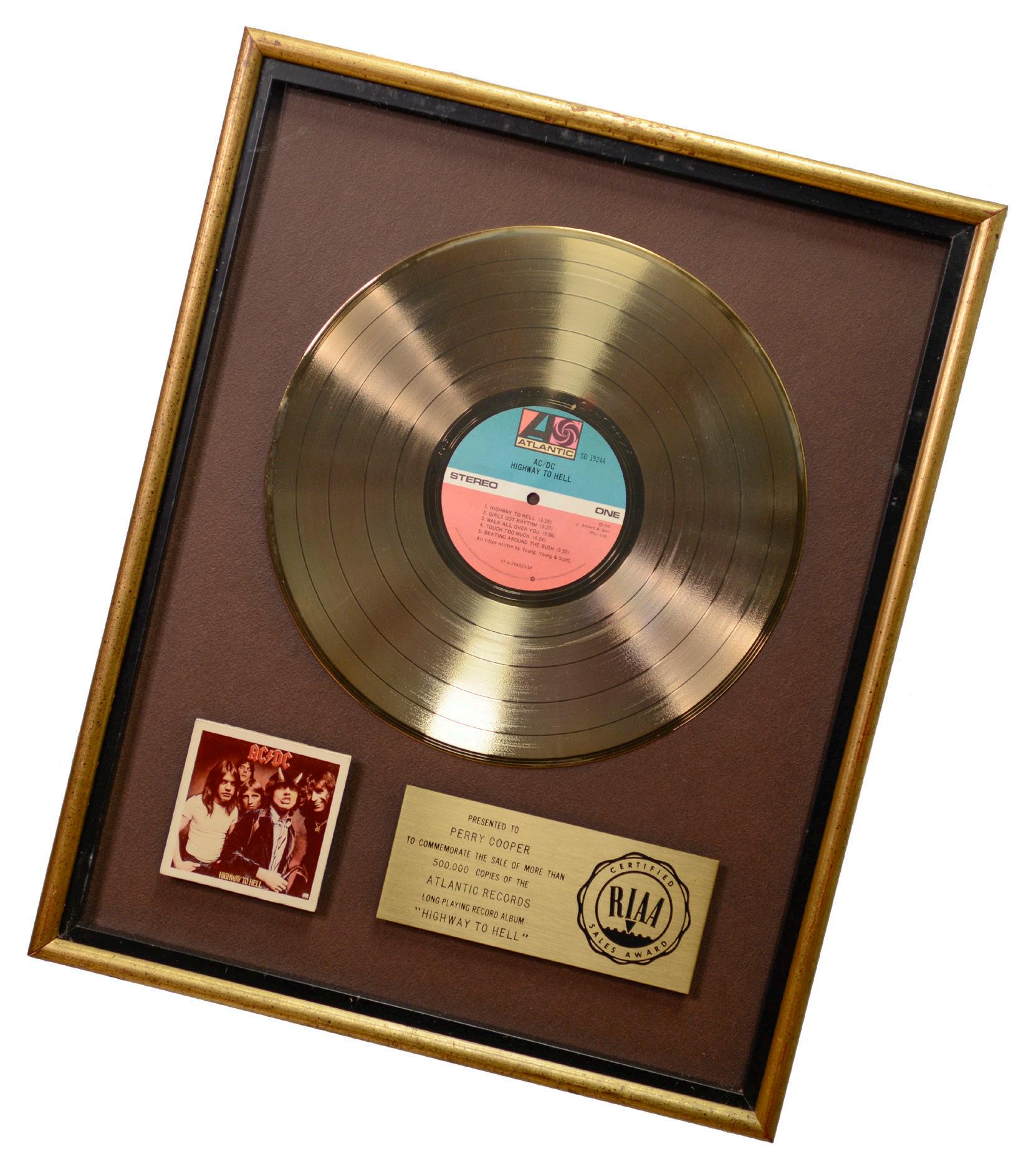 LOT #295: AC/DC - “Highway to Hell” Gold Sales Award