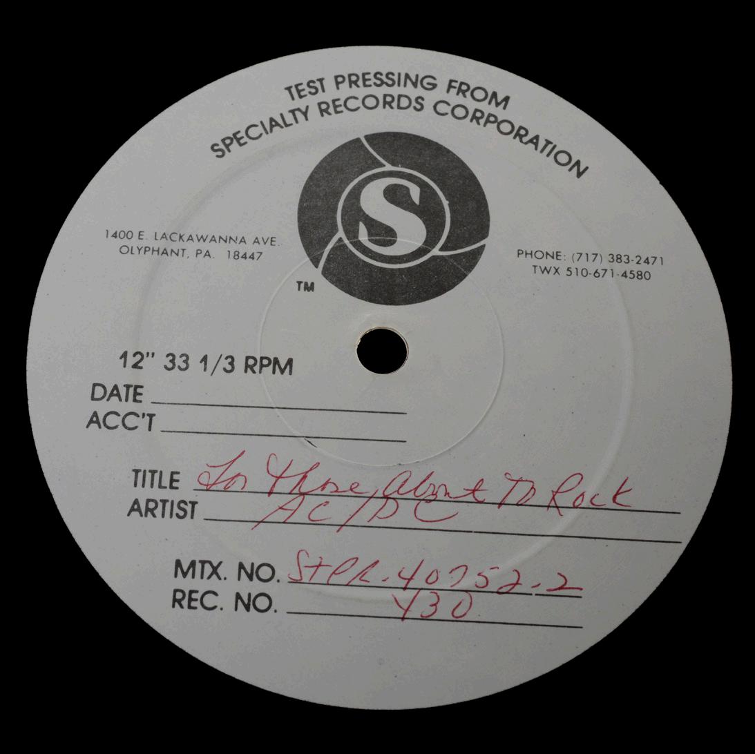 LOT #154: AC/DCUnreleased Live Test Pressing of “For Those About to Rock”