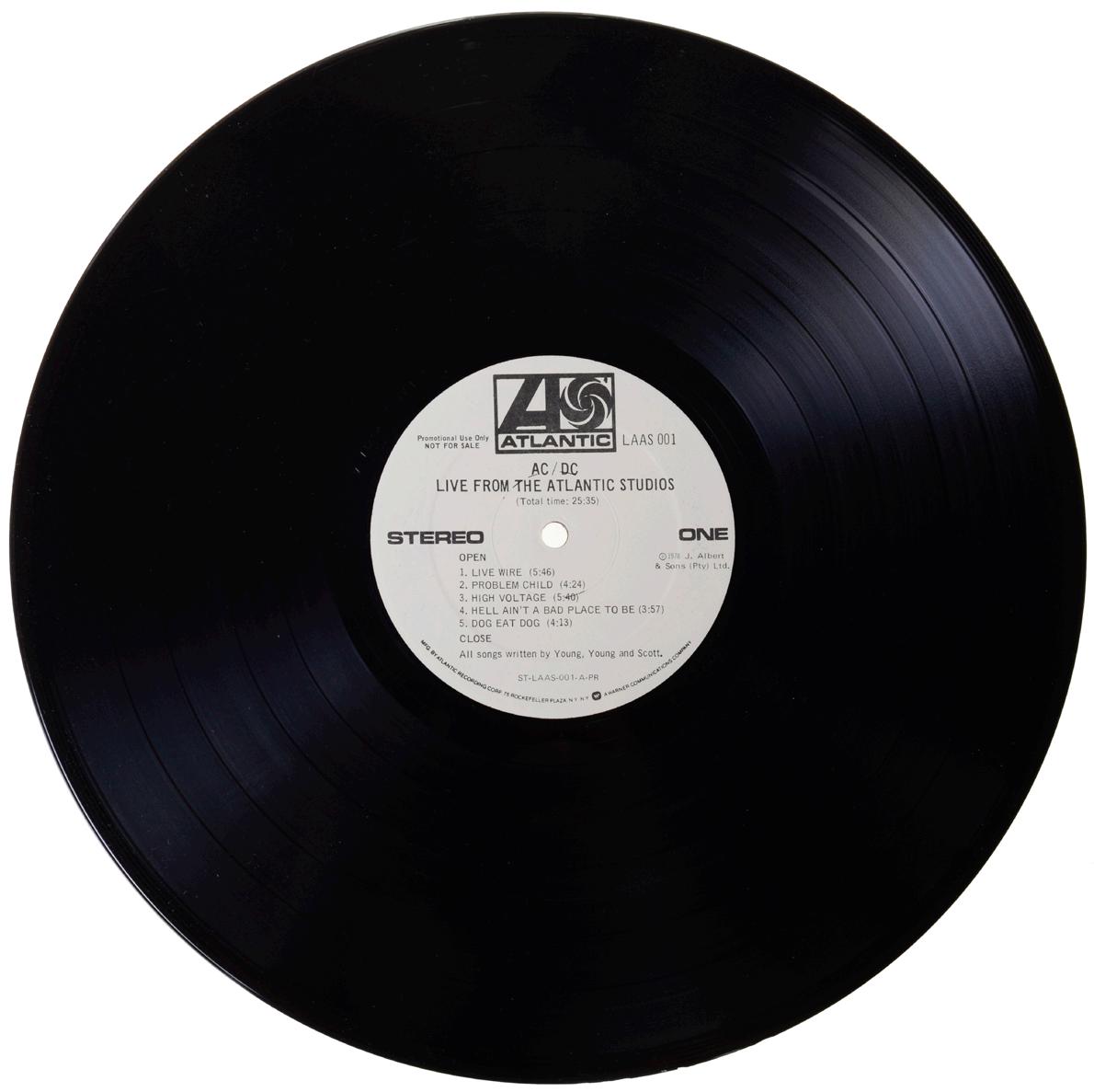 Step into rock history with this exceptional copy of “Live from the Atlantic Studios” – one of the rarest AC/DC artifacts ever produced. Originally distributed exclusively for promotional use and never made available for sale, this LP captures AC/DC’s raw power and electrifying stage presence during a live session recorded on December 7, 1977.