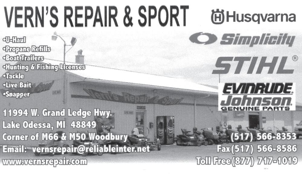 Page 14 READ THE SHOPPER’S GUIDE ONLINE AT ioniacountyshoppersguide.com - SATURDAY, MARCH 11,2023 Home • Business • Auto • Farm Windshields Screens Vinyl Windows Store Fronts Thermal Panes Mirrors Plexiglas Plate Glass Services also available on-site Open Mon-Fri 7:30-4:30, Weekends by appointment Randy Miller, Owner 470 Price Street ph. 616.523.6633 Ionia, MI 48846 fx. 616.523.6634 millerglassllc@gmail.com 3653 S State Rd., Ionia • endviautobody@yahoo.com 616 775-5290 FIND US ON FACEBOOK & TWITTER AUTO BODY (616) 527-9368 COMMERCIAL RESIDENTIAL SERVICE & INSTALLATION NEW CONSTRUCTION HEATING & AIR CONDITIONING PLUMBING BOILER SERVICE SEWER & DRAIN CLEANING HIGH PRESSURE WATER JETTING omaraphc.com Ionia 3522 S. State 616-522-1450 Capital EQUIPMENT RENTAL EQUIPMENT: RIVERSIDE REALTY EXCEEDING EXPECTATIONS 327 W. MAIN ST.~ IONIA, MI 48846 www.riversiderealtymi.com (616) 522-6006 Jim Buxton....................616-485-2749 Aimee Knudson.............616-401-5078 Warren Conley...............616-902-8792 Becky Kasper.................989-620-0873 www.ioniahabitat.org HabitatForHumanityIoniaCounty SHOP HOURS: Monday–Friday 10am-4pm Saturday 10am-3pm 113 S Depot St., Ionia 616-841-9202 DONATE & SHOP TO HELP US FUND OUR HOME BUILDS & REPAIRS! INVENTORY ARRIVING DAILY! DROP OFF DURING BUSINESS HOURS OR CALL 616-841-9202 FOR DONATION PICK UP Notary SERVICE At the Ionia County Shoppers Guide Monday ~ Thursday 8am to 3pm Please Call Ahead to Schedule! 616.642.9411 $25 PER WEEK YOUR CARD HERE FOR ONLY 6 Week Minimum! Call... 616-642-9411 K M K M& & Express Lube & Full Service Auto Repair • OIL CHANGES • NEW TIRES • TRANSMISSION SERVICE • TUNE UPS • BRAKE SERVICE • MOTOR REPAIRS • FRONT END ALIGNMENTS HOURS: Mon-Fri 9am - 6pm Sat. 9am - 3pm 287 W. MAPLE ST. MUIR • 989-853-1133 OWNERS: Mike Lovejoy Kevin Heilman FIND US 616.902.0449 Ionia • Greenville • Portland Lake Odessa • Lowell Sales, Service & Installation Specializing in Broken Springs Family Owned & Operated Over 25 years Experience! • Openers • Steel Doors • Roll-Up Doors • Special Order Doors IONIA GARAGE DOOR FurnaceFREEQuotes! FINANCING AVAILABLE Locally owned & managed by the Denker Family for 18 years! HEATING & COOLING 616-527-8592 www.homexperts.us $20 OFF your next repair! –on any brand–