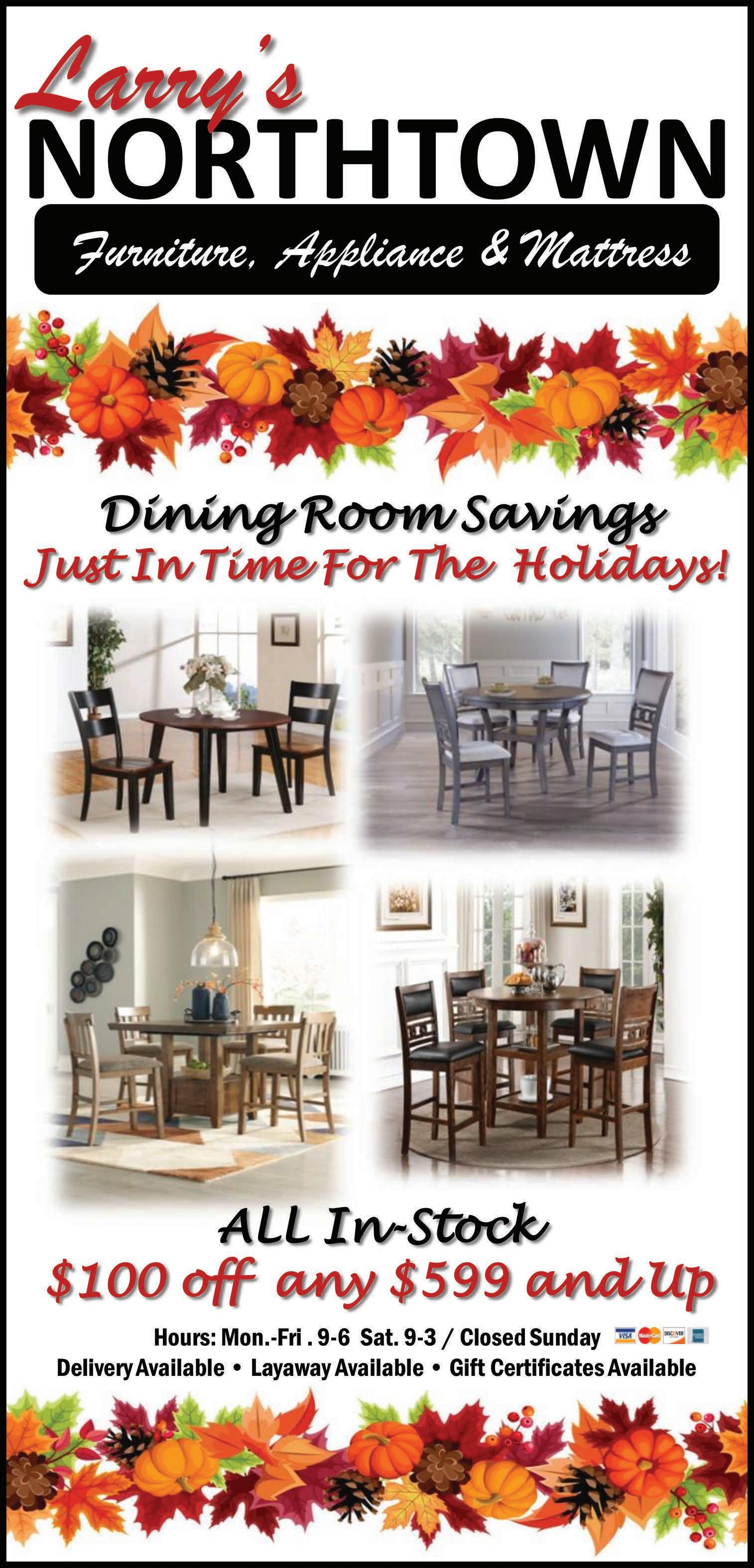 PLEASE MENTION COUPON WHEN ORDERING BLACK FRIDAY!! COUPON GOOD FOR A PARTY OF FOUR 6 OZ. PETITE SIRLOIN WITH LOADED MASHED ALWAYS A FAVORITE SIZZLER STEAK 999 $11.99 VALUE COUPON IS GOOD NOV. 22 COUPON IS GOOD NOV. 25 CHARGRILLED! COUPON IS GOOD NOV. 23 JOIN US FOR DINNER 11:00 - 8:00 TUESDAY’S BEST!! JOIN US FOR DINNER 4:00 - 8:00 WEDNESDAY ONLY! FOR LUNCH OR DINNER 11:00 - 8:00 999 $12.99 VALUE CLASSIC HOT BEEF SLOW COOKED POT ROAST STACKED ON TEXAS TOAST MASHED POTATOES AND GRAVY 200 REGULAR 15.99-25.99 DINNER ENTREES STEAKS • CHICKEN • CHOPS GRILLED SALMON, TOO! WITH SOUP AND SALAD BAR OFF BLUNDY-HOPPES TIRE & AUTO CLINIC Family Owned & Operated Serving Ionia County for 37 Years 3765 S. State Road, Ionia • 527-0670 HOURS: M–TH TILL 5:30PM FRI TILL 5PM CLOSED SAT & SUN We proudly feature CALL FOR REBATES ON BF GOODRICH, FALKEN, GOODYEAR, MICHELIN, CONTINENTAL & MORE! COMPLETE UNDER CAR SERVICE! Exhaust Service • Tune-Ups • Oil Changes • Quick Lube • Brake Reconditioning • Complete Suspension Work 4x4 Bearing & Lock-Out Service • Wheel Balancing • Complete battery & electrical services Front & Rear Alignments (up to 207” wheelbase) HAVE A SAFE & HAPPY THANKSGIVING! OLD MAN WINTER IS ON HIS WAY! Get your vehicle tuned up, battery checked & snow tires for safe winter driving! Snow Tires are in short supply... Get yours SOON! Phone: 517-726-0181 Fax: 517-726-0060 e-mail: stantonsauctions@sbcglobal.net www.stantons-auctions.com 144 South Main St. P.O. Box 146 Vermontville, MI 49096 Selling Real Estate and All Types of Property, at Auction, Anywhere! ESTATE COIN & STAMP AUCTION BARRY CO. FAIRGROUNDS, 1350 N. M-37 HWY., HASTINGS, MICHIGAN SATURDAY MORNING, DECEMBER 3RD, 9:30 AM A large sale of nearly 600 lots, with an excellent representation of U.S. and Foreign coins, gold, silver, fine US type coins, proof and mint sets, and more. There are many high grade, rare and scarce U.S. type coins included. Also, from a West Michigan Estate is a large collection of stamps, books upon books of antique and modern Philatelic material including unused sheets, etc. Call for a catalog.