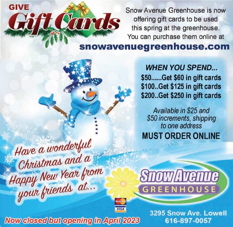 Page 11 Place Your Classified: www.IONIACOUNTYSHOPPERSGUIDE.com OR CALL 616 642-9411 - SATURDAY, NOVEMBER 26, 2022 A Time For Friends. A Time For Family. A Time For Gratitude. At Thanksgiving and always, we give thanks for all of the wonderful people in this community who give us so much to celebrate! 13 Bridge Street, Downtown Saranac 616 642-9411 www.ioniacountyshoppersguide.com