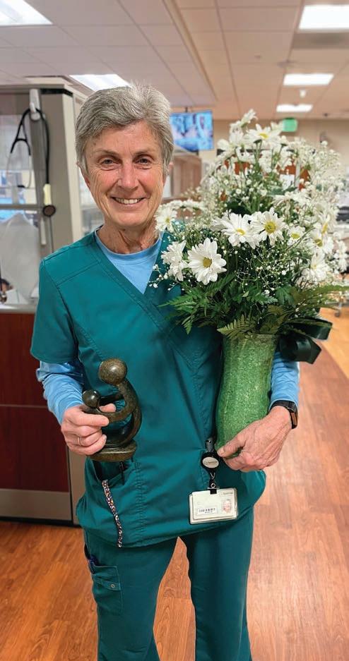 Brillhart received her 3 gallon pin; Steven Pett received his 12 gallon pin; Linda Rutz received her 15 gallon pin and Leo Rutz has donated 16 gallons of life saving blood!