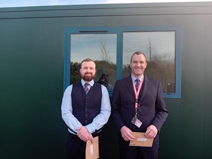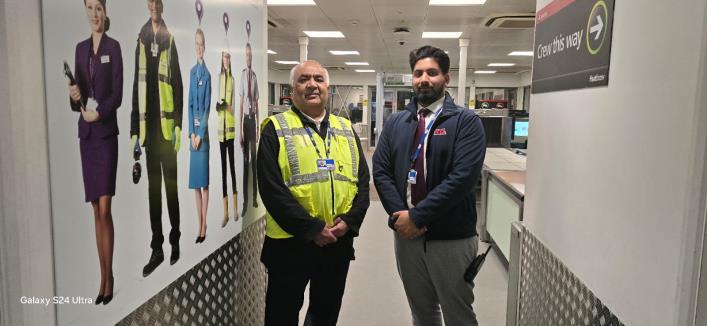 Photos of our Aviation Trainers, Ajinder Sangha and Andy Akers pleased with their 5-year service lapel pins.