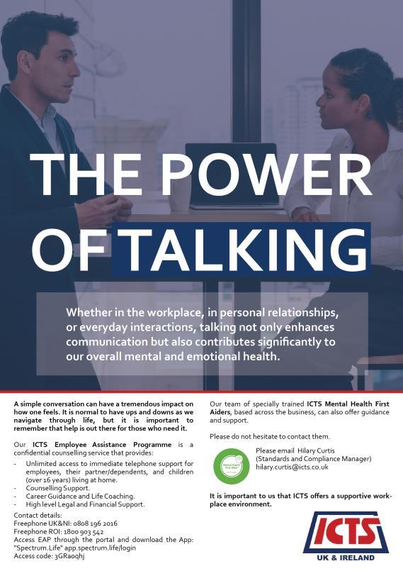 Please don’t forget that we are fortunate to have an Employee Assistance Programme at our disposal and a team of Mental Health First Aiders who can provide support and guidance.